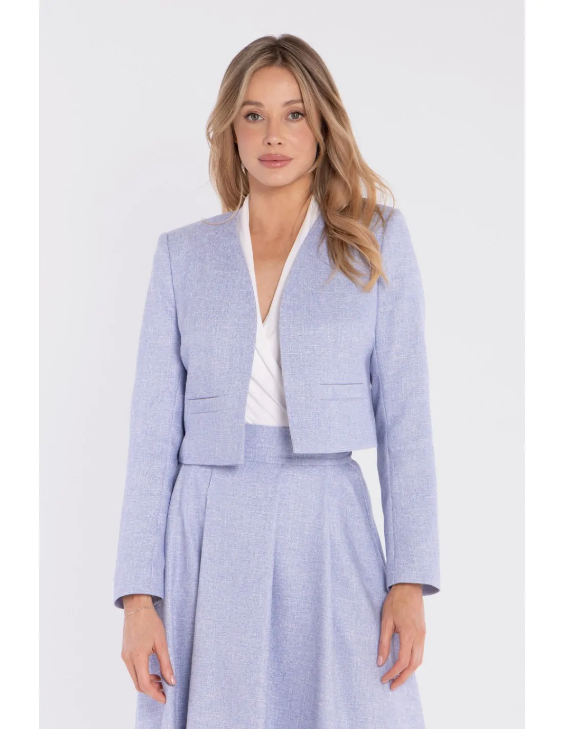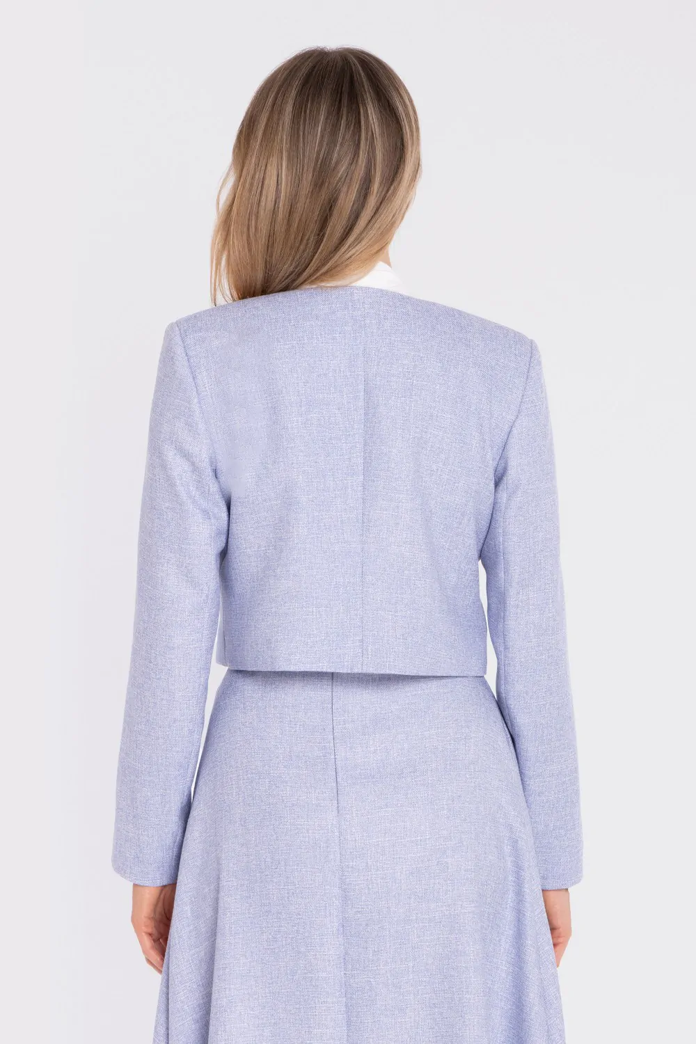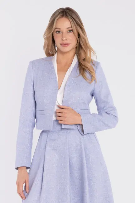 Elegancka krótka marynarka bez zapięcia - błękitna