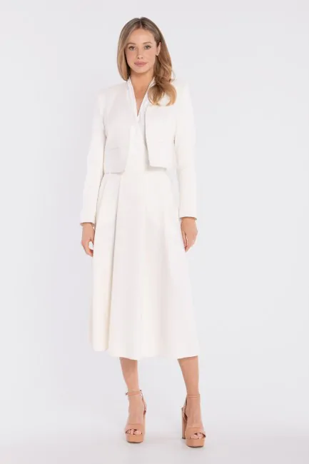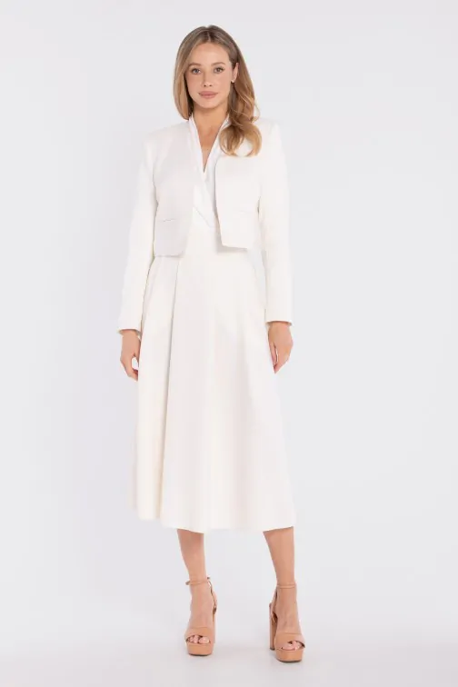 DM1676 Elegancka krótka marynarka bez zapięcia - śmietankowa