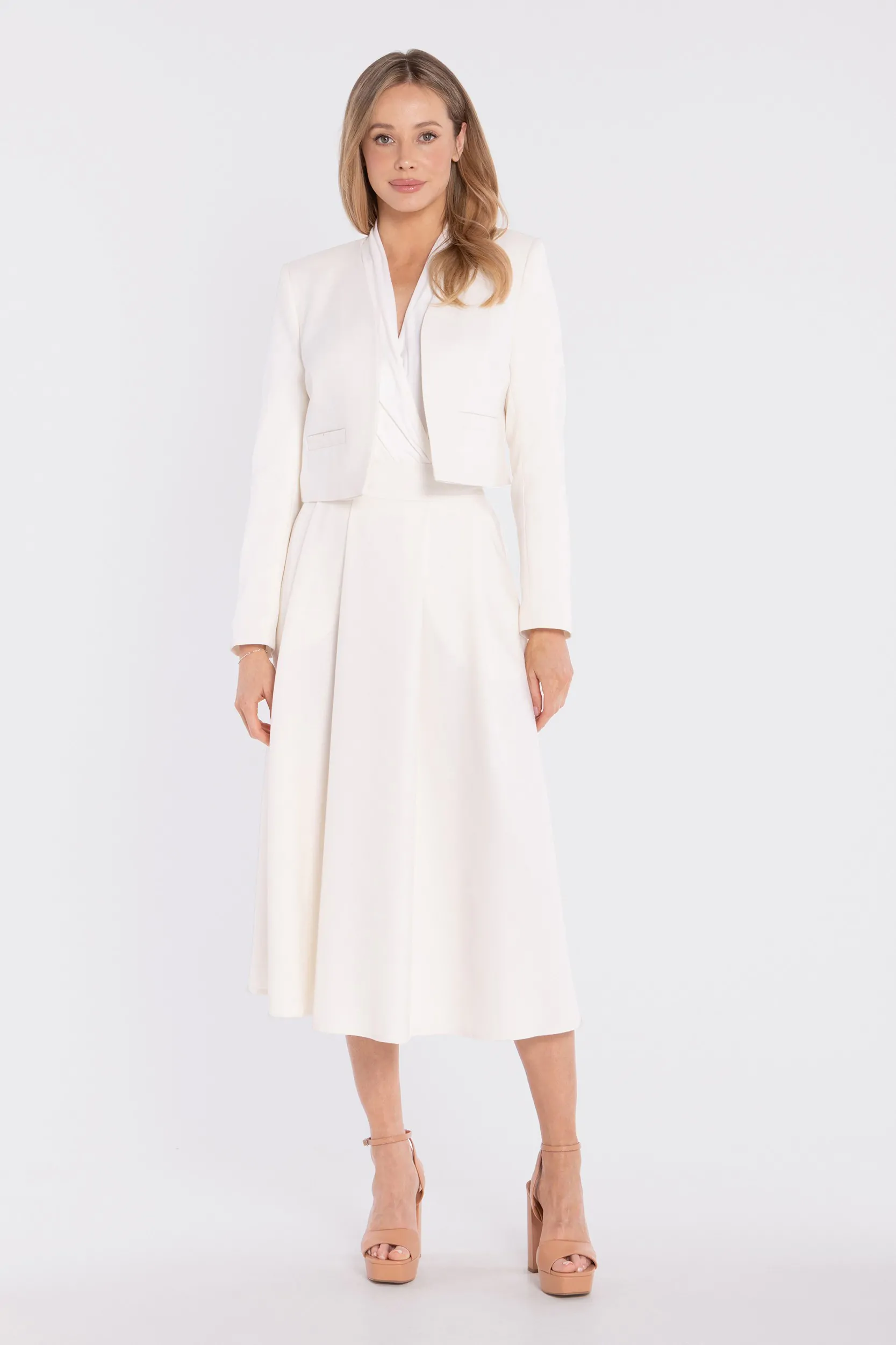 Elegancka krótka marynarka bez zapięcia - śmietankowa