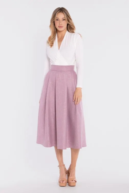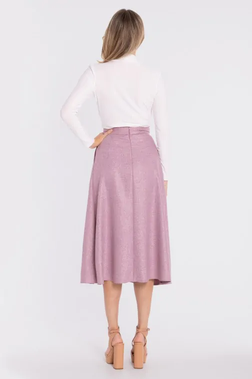 Rozkloszowana spódnica midi z wysokim stanem - marsala