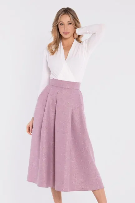 DM1677 Rozkloszowana spódnica midi z wysokim stanem - marsala