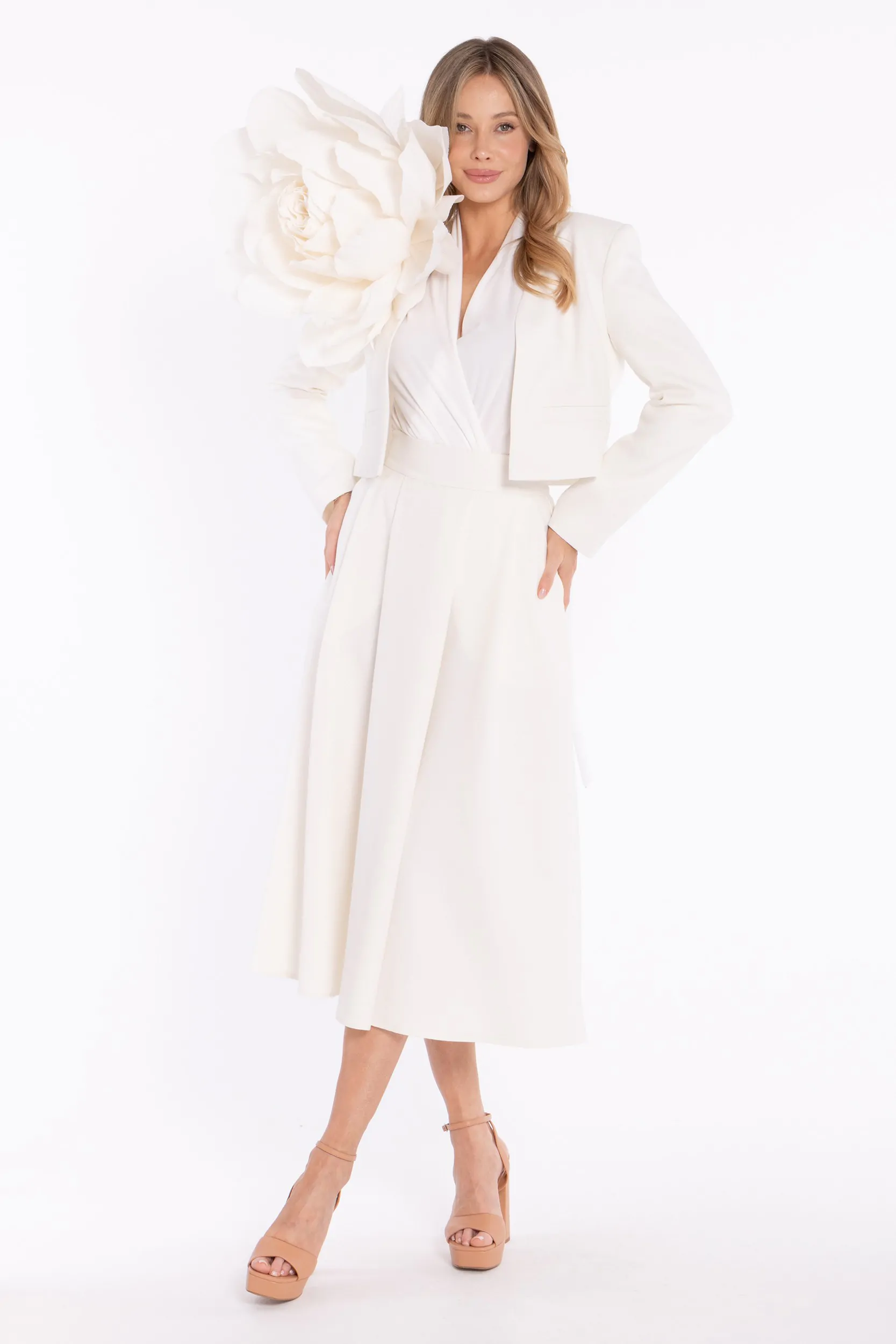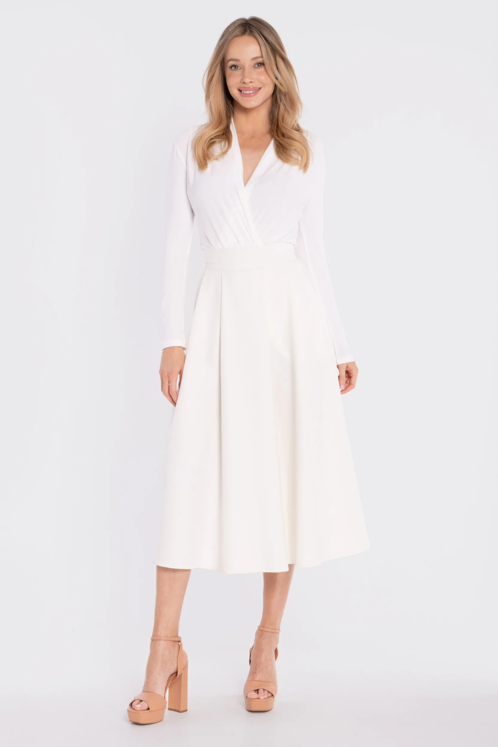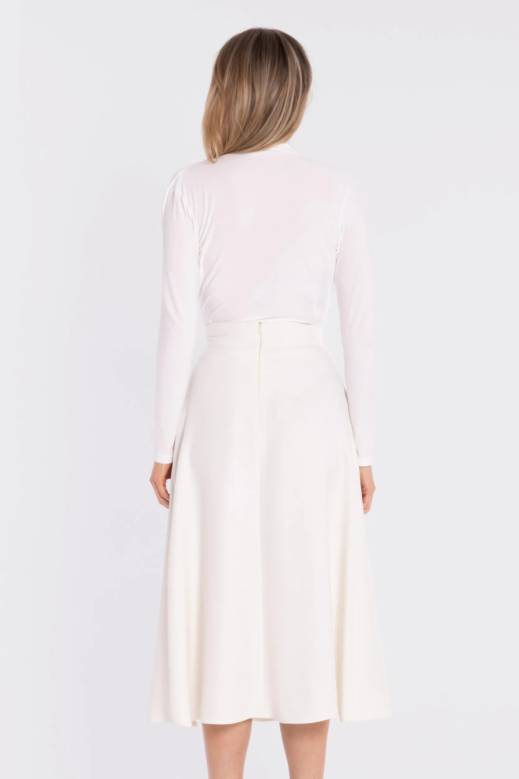 Rozkloszowana spódnica midi z wysokim stanem - śmietankowa