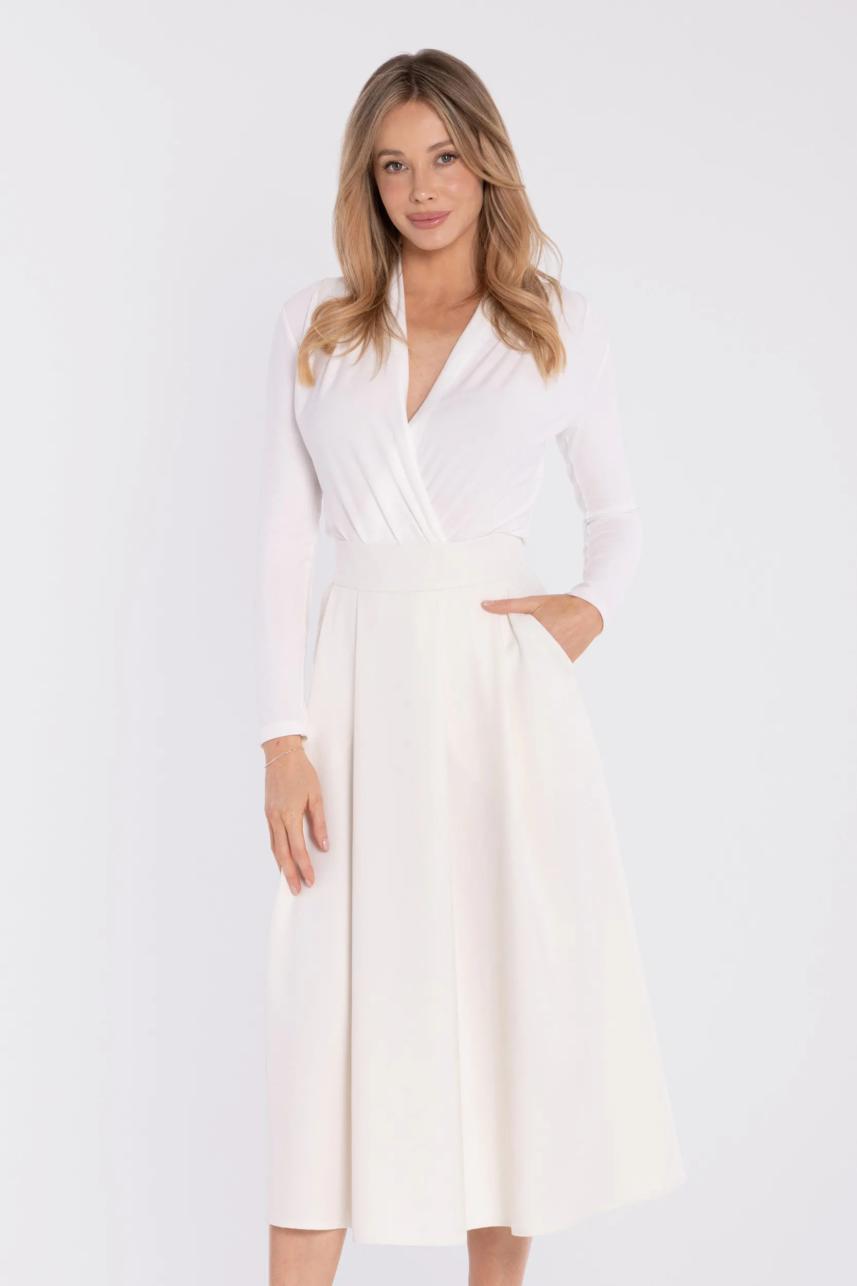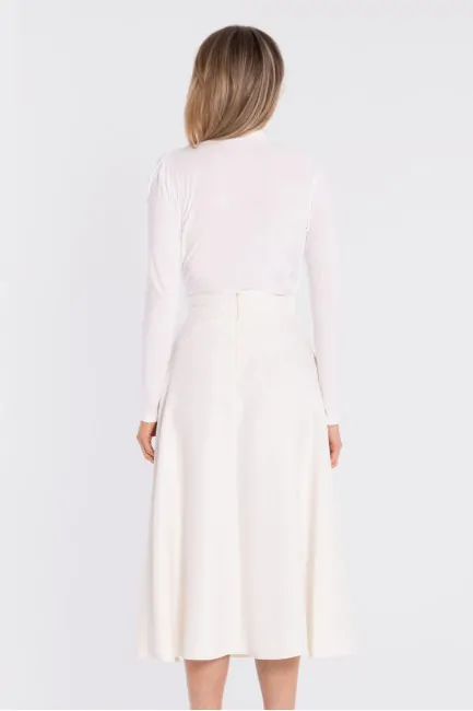 DM1677 Rozkloszowana spódnica midi z wysokim stanem - śmietankowa