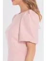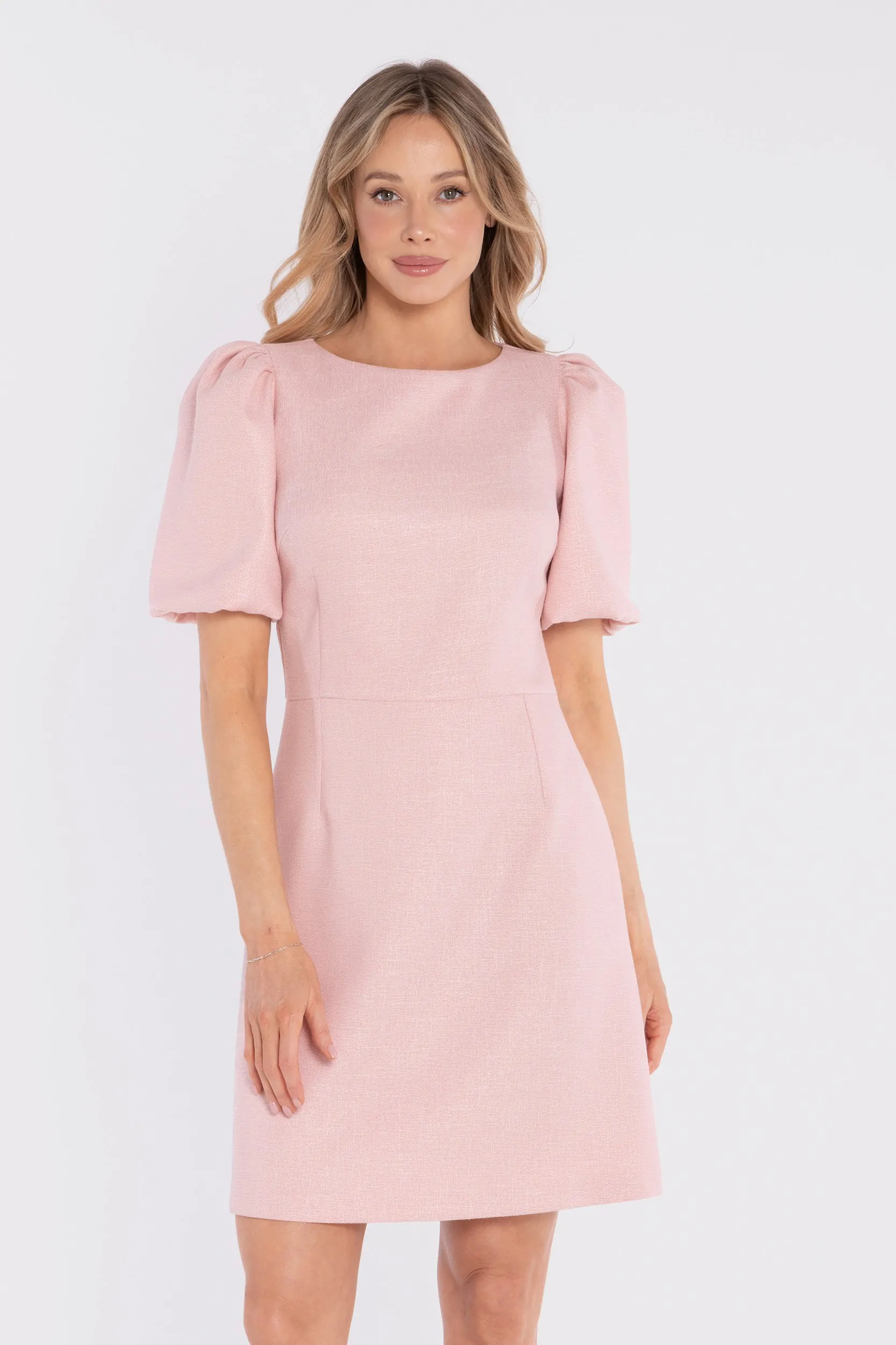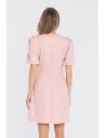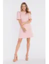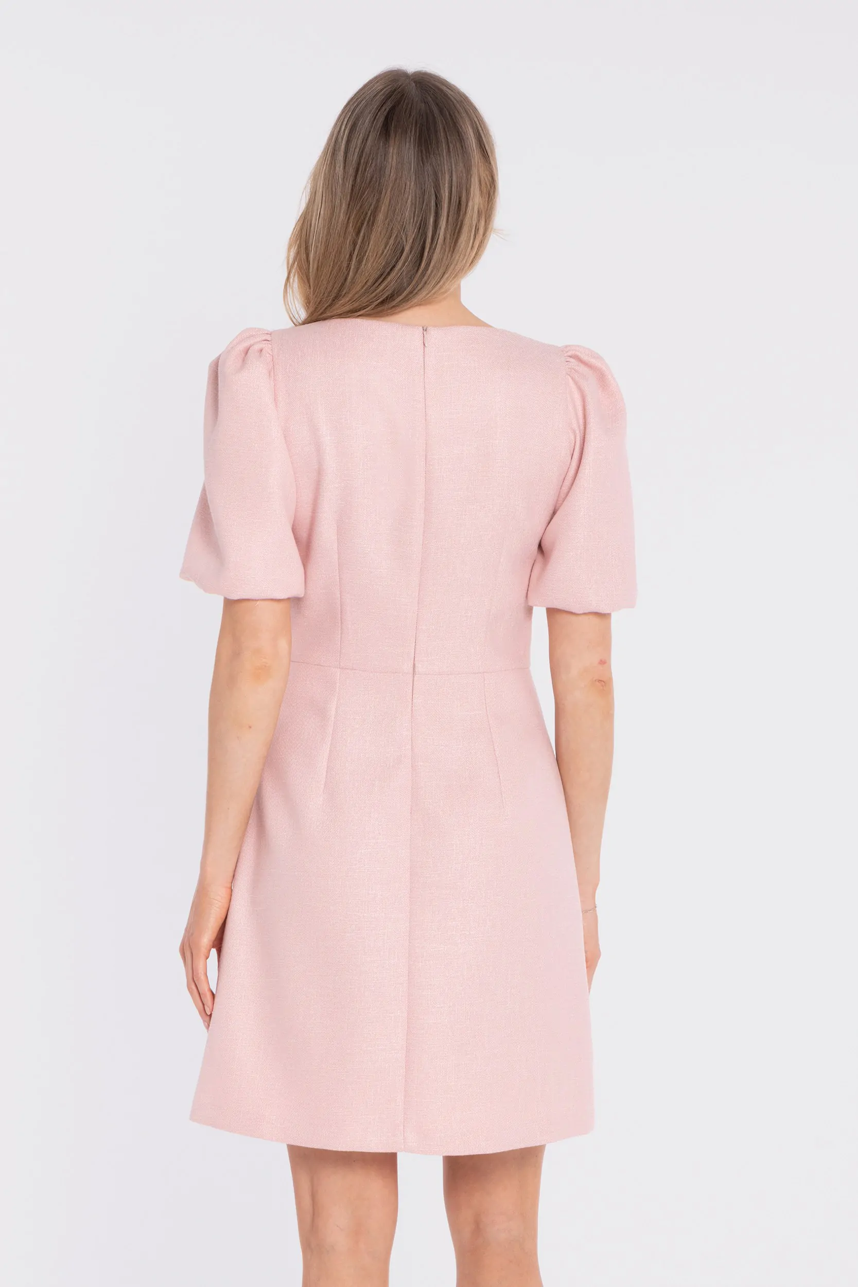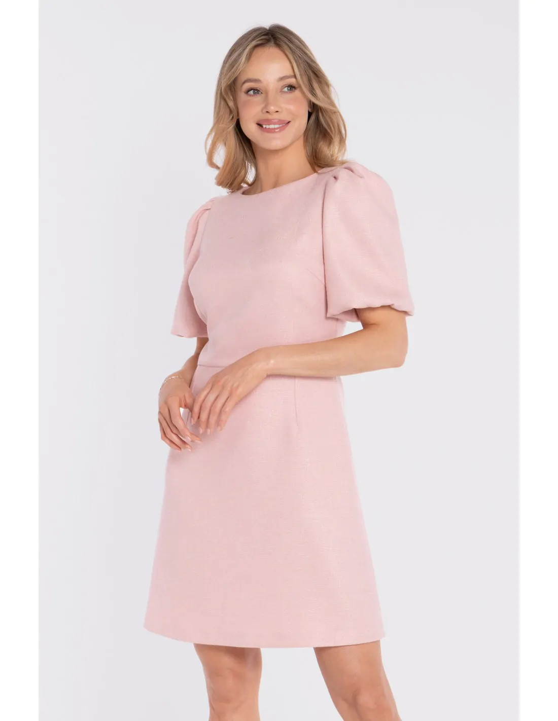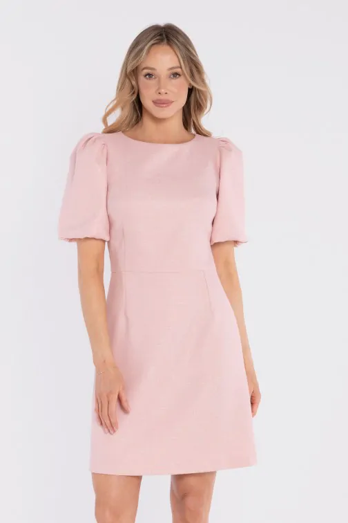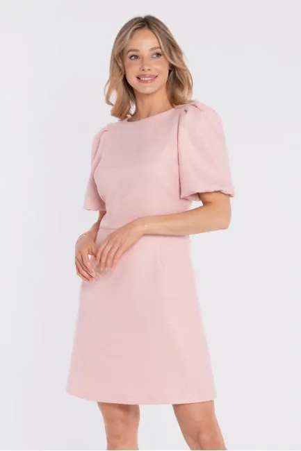 DM1678 Sukienka tweedowa mini z bufiastymi rękawami - brzoskwiniowa