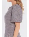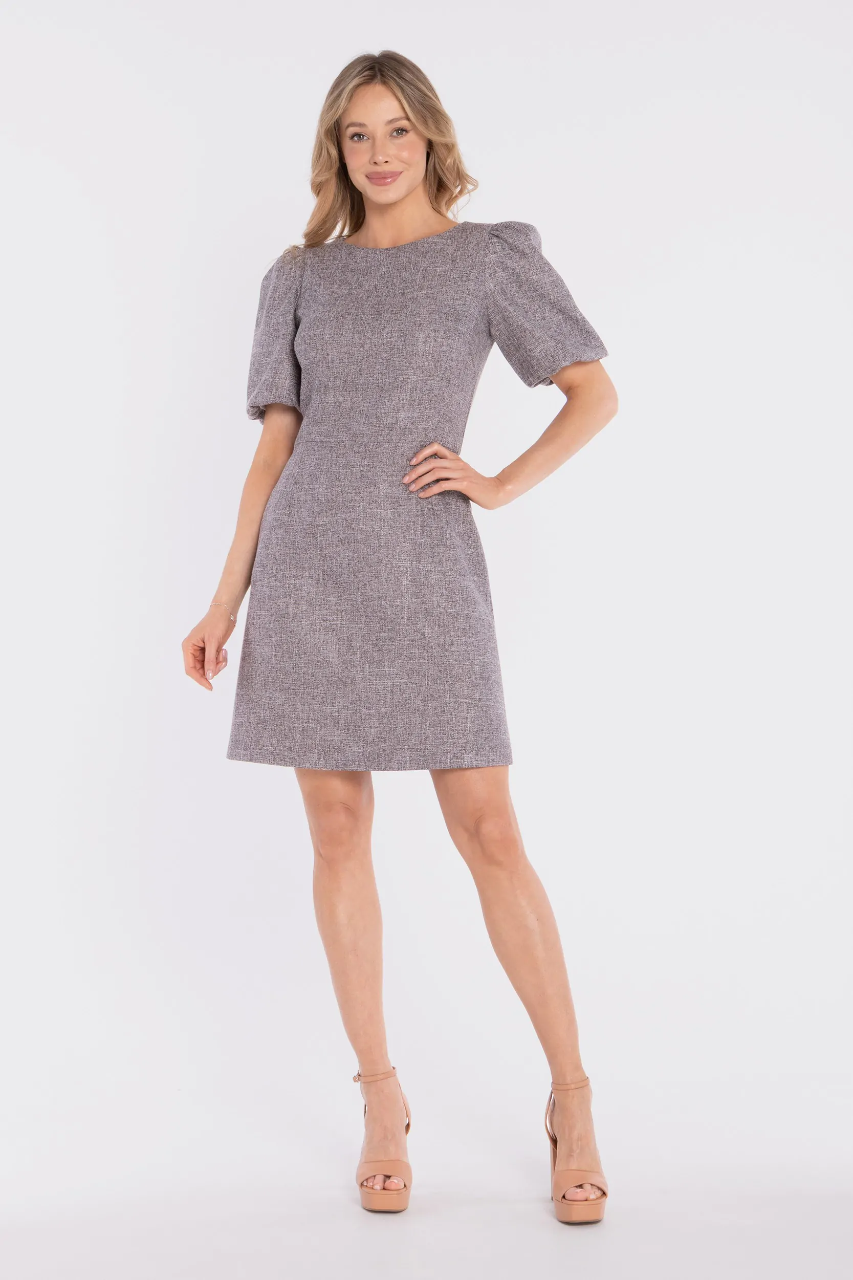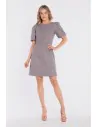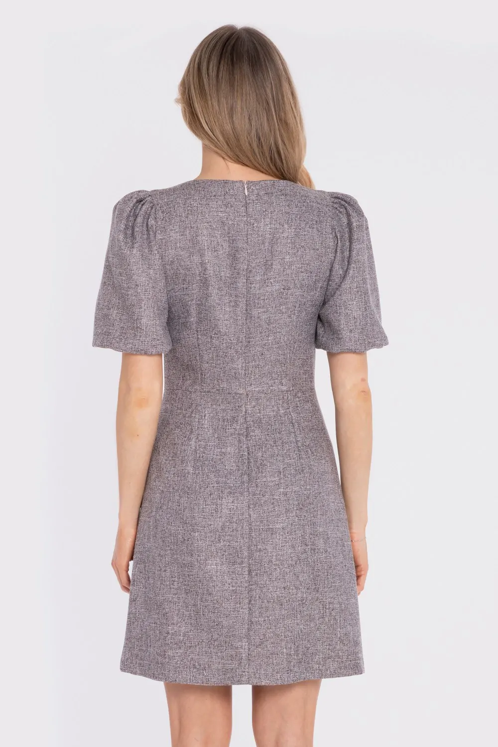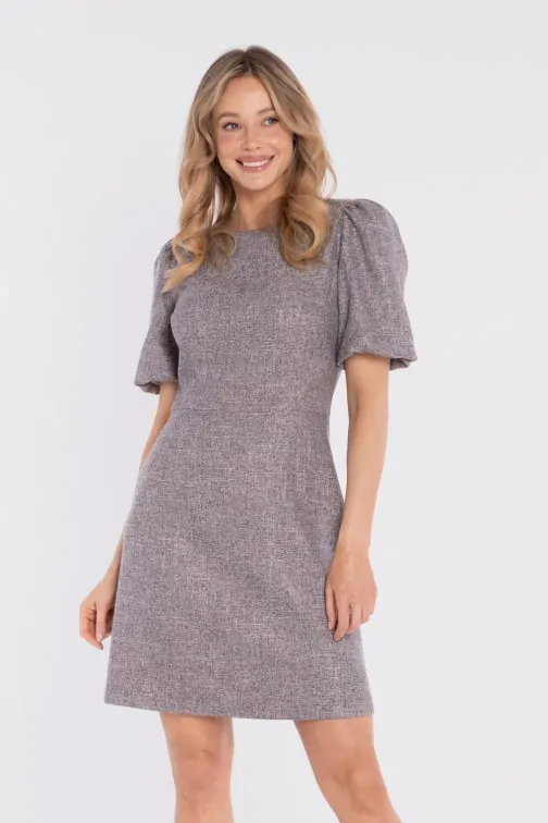 DM1678 Sukienka tweedowa mini z bufiastymi rękawami - grafitowa