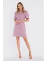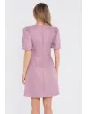 DM1678 Sukienka tweedowa mini z bufiastymi rękawami - marsala