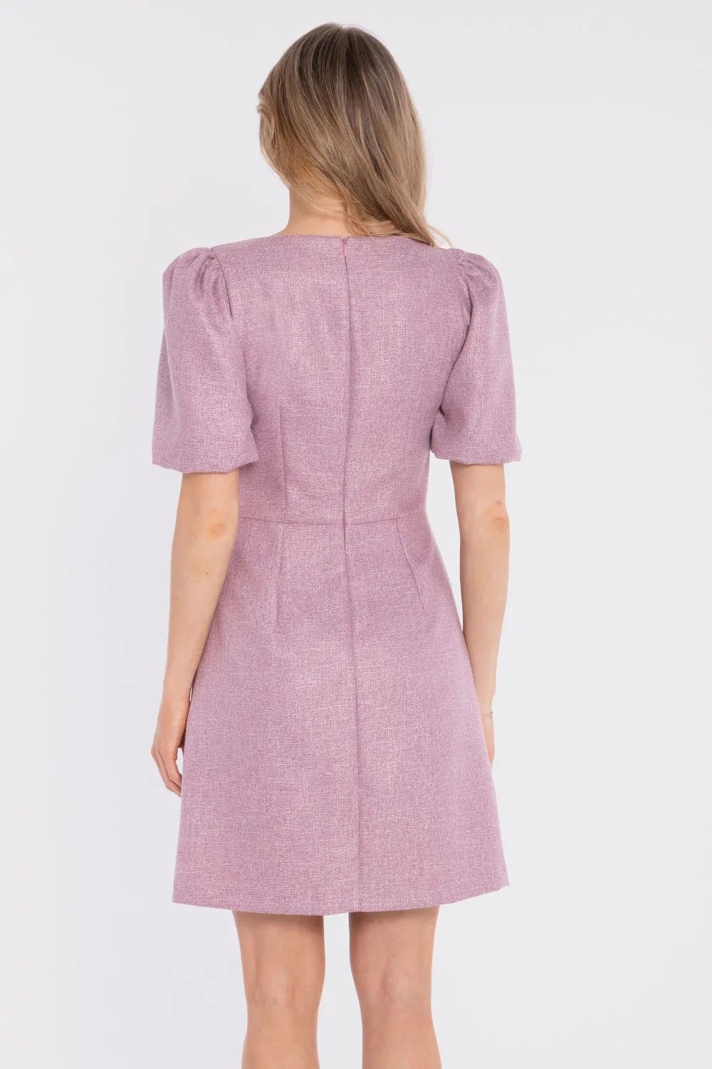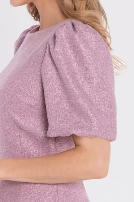 Sukienka tweedowa mini z bufiastymi rękawami - marsala