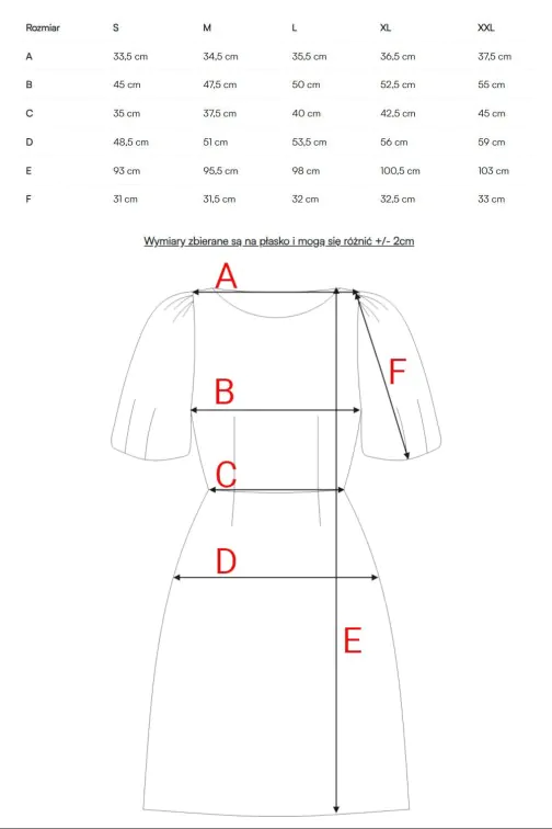 • Rękawy: krótkie, bufiaste, o swobodnej formie