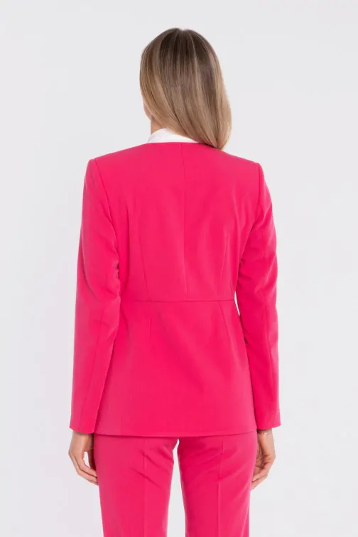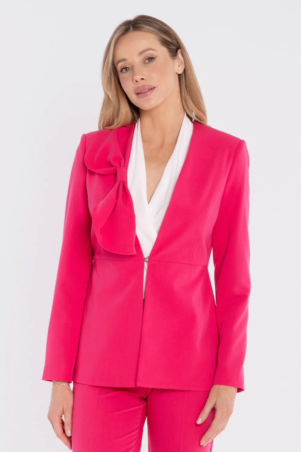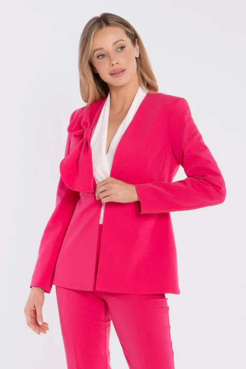 Elegancka marynarka z ozdobną kokardą - różowa