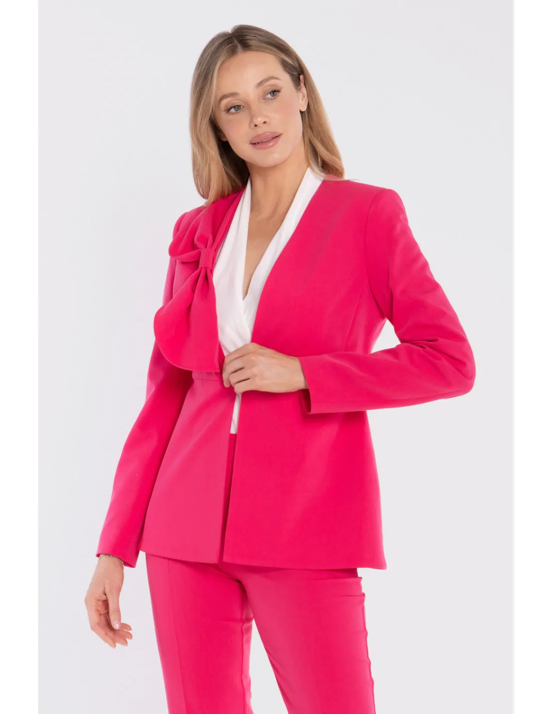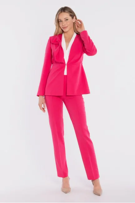 DM1679 Elegancka marynarka z ozdobną kokardą - różowa