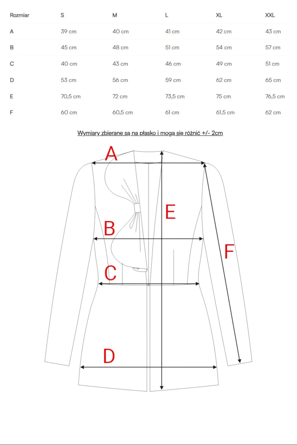 Kształt: dopasowana w talii, z wydłużoną linią i uporządkowaną formą