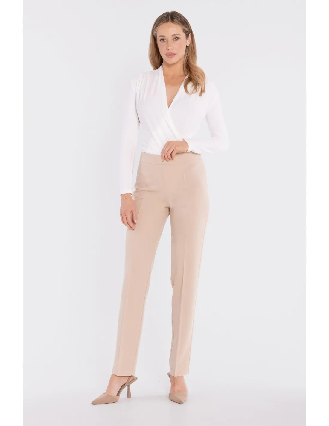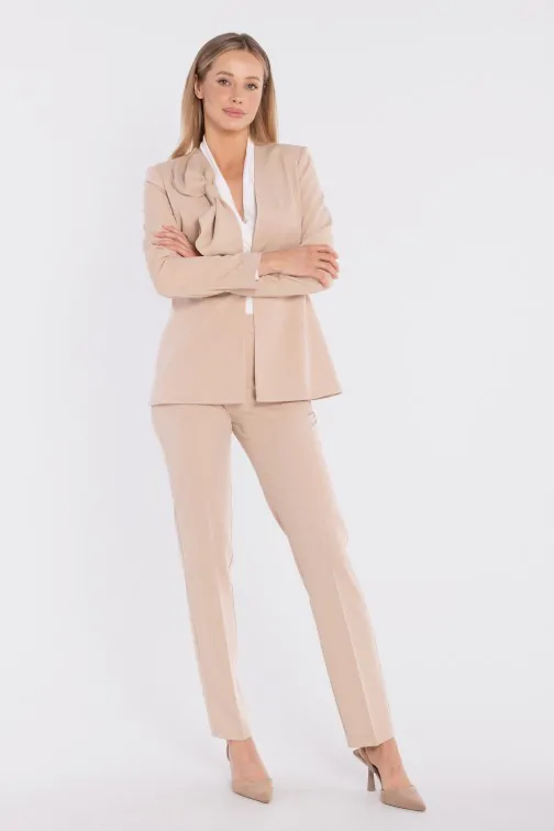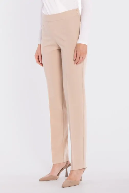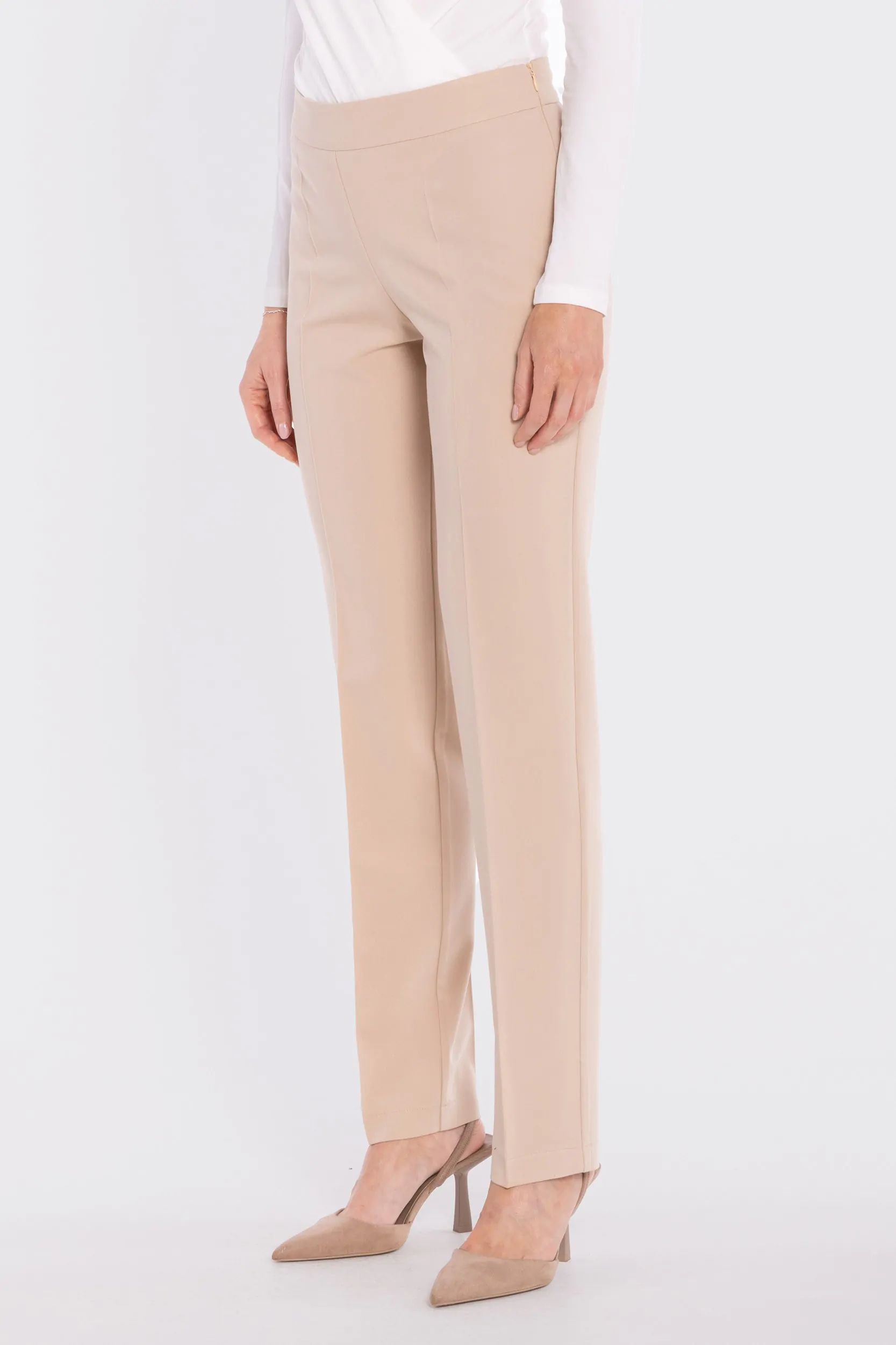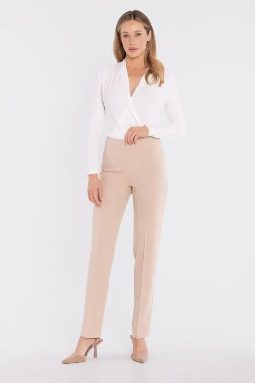 DM1680 Eleganckie spodnie cygaretki z kieszeniami - beżowe