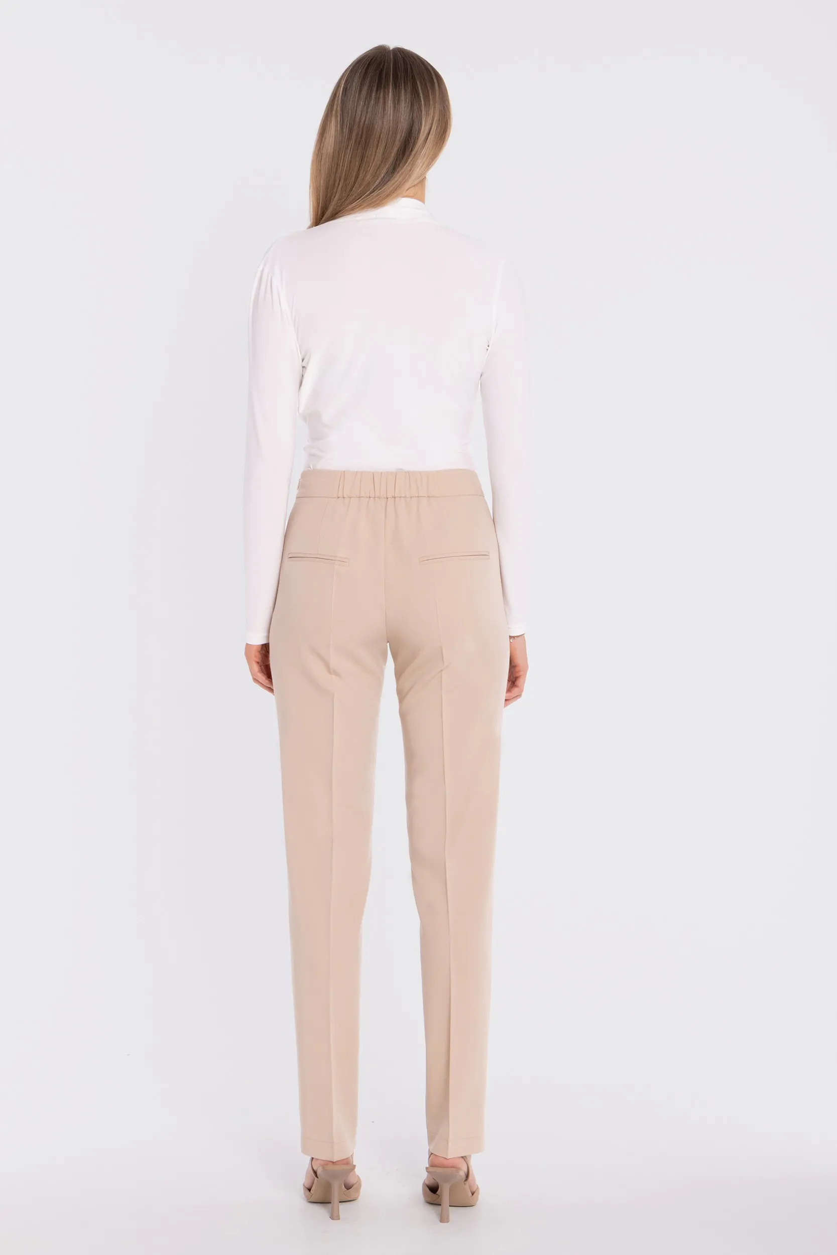 Eleganckie spodnie cygaretki z kieszeniami - beżowe