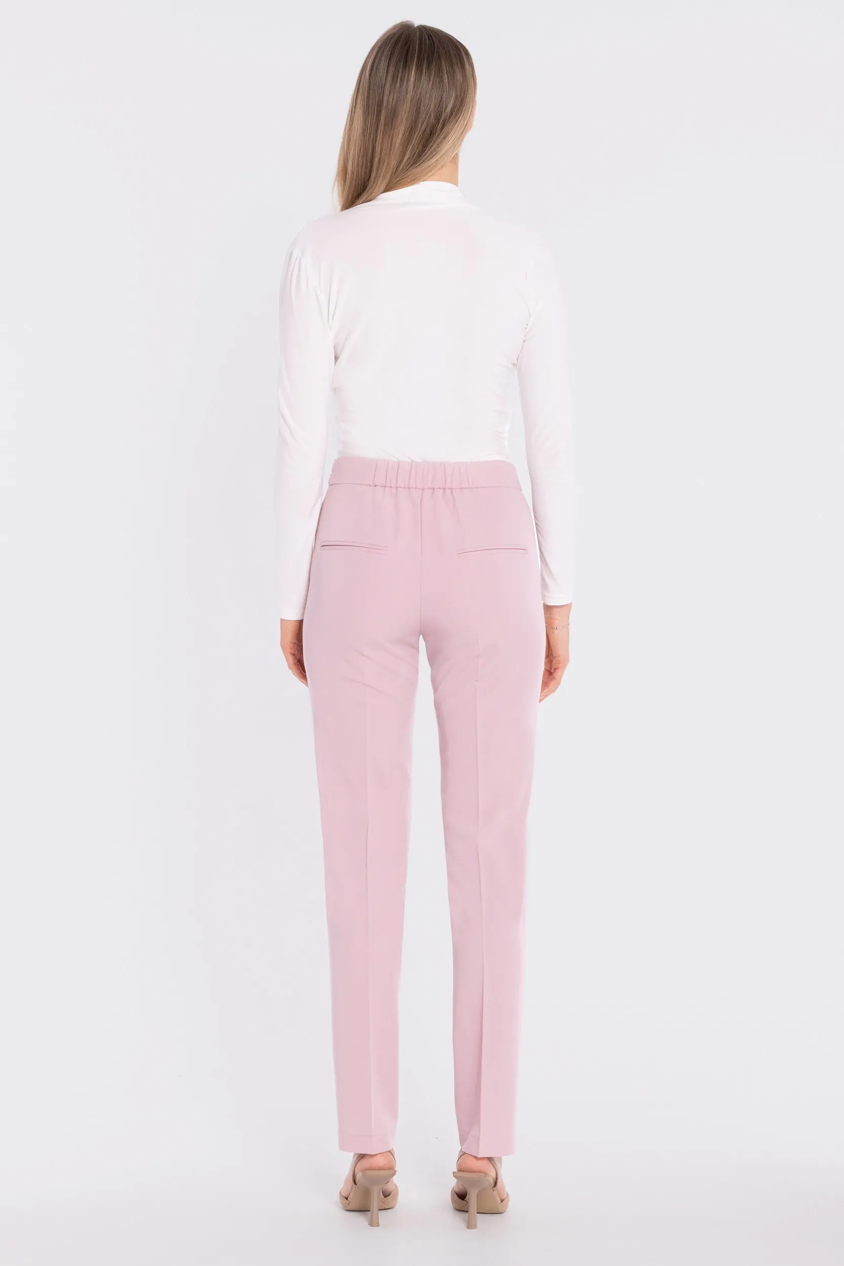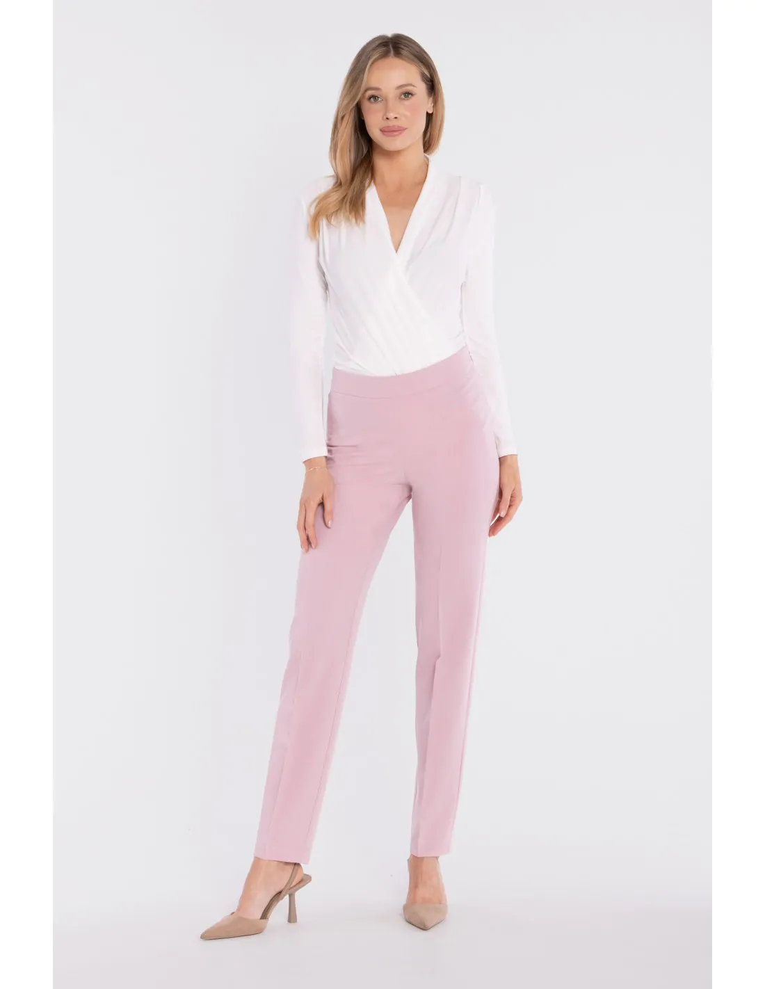 Klasyczny model, który doskonale odnajdzie się zarówno w stylizacjach biznesowych, jak i bardziej modowych zestawach. Dzięki elastycznej gumie w tylnej części pasa spodnie są wygodne i dobrze dopasowują się do sylwetki. Idealne w połączeniu z marynarką, koszulą, topem lub eleganckim body – sprawdzą się na spotkania, do pracy, rodzinne uroczystości oraz wyjścia wymagające eleganckiego charakteru.