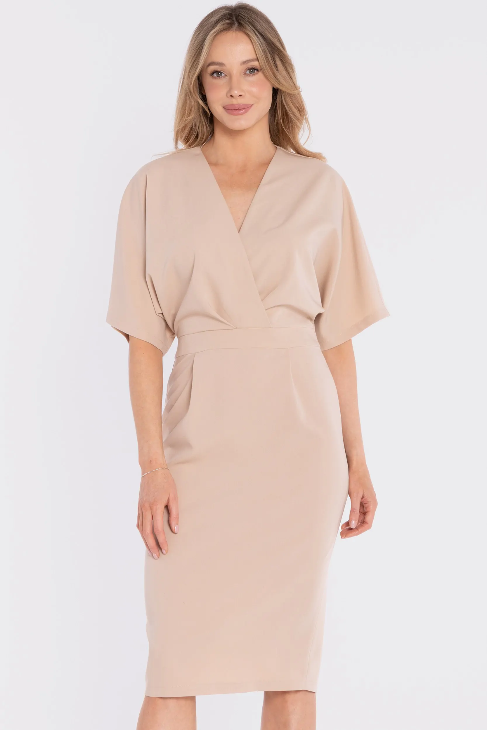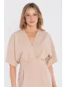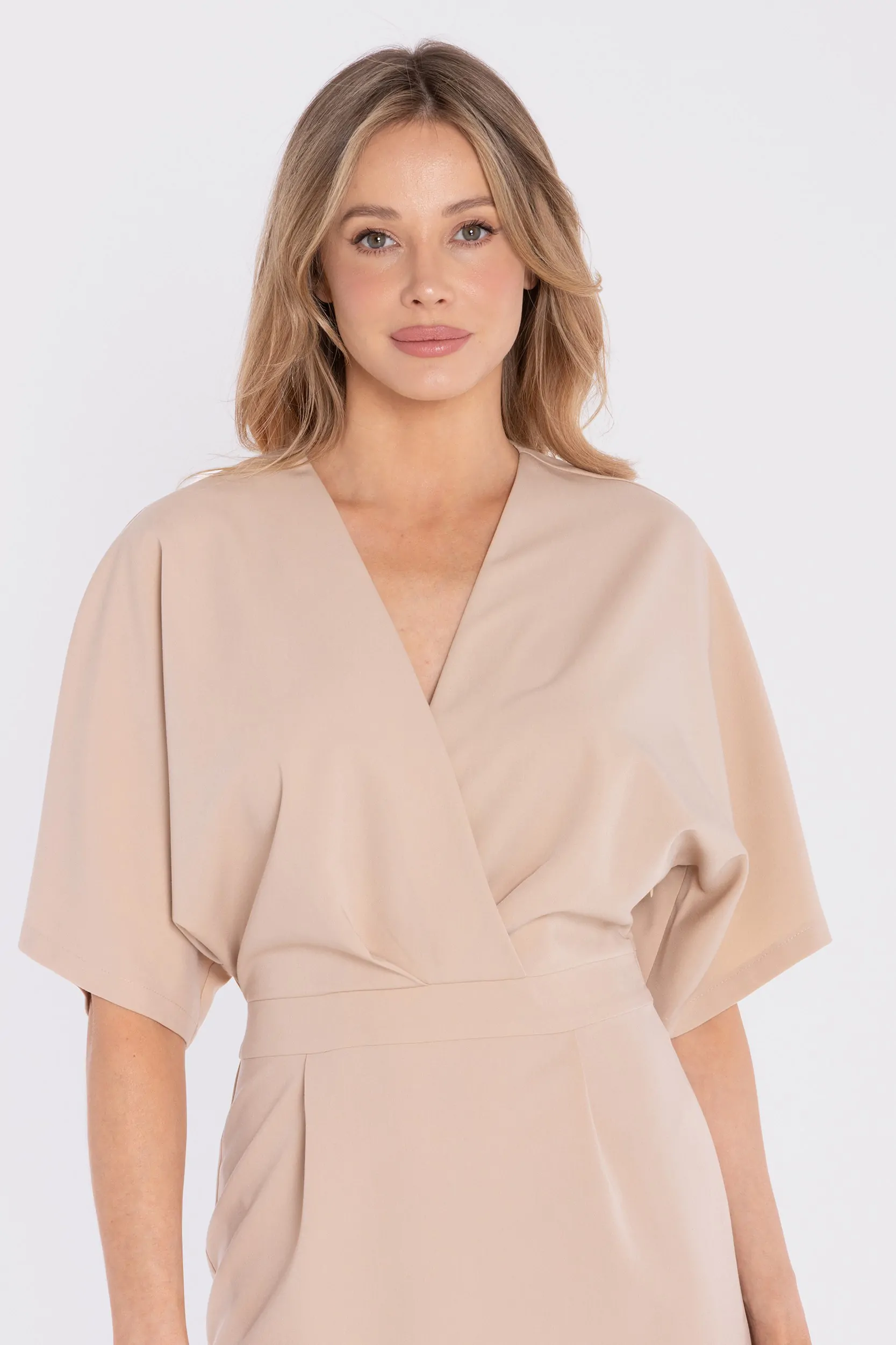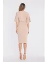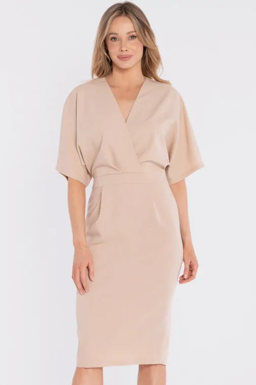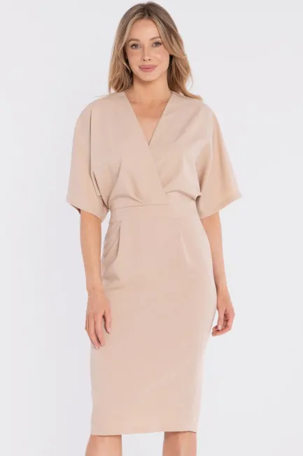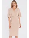 DM1681 Sukienka kopertowa midi z krótkimi rękawami - beżowa