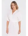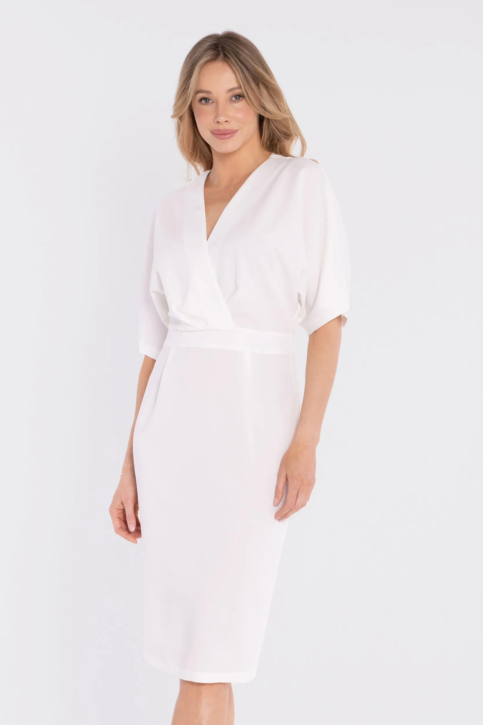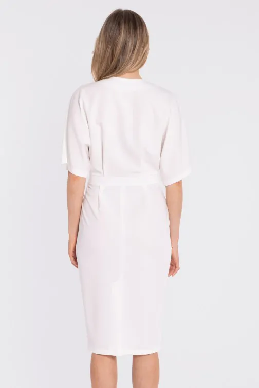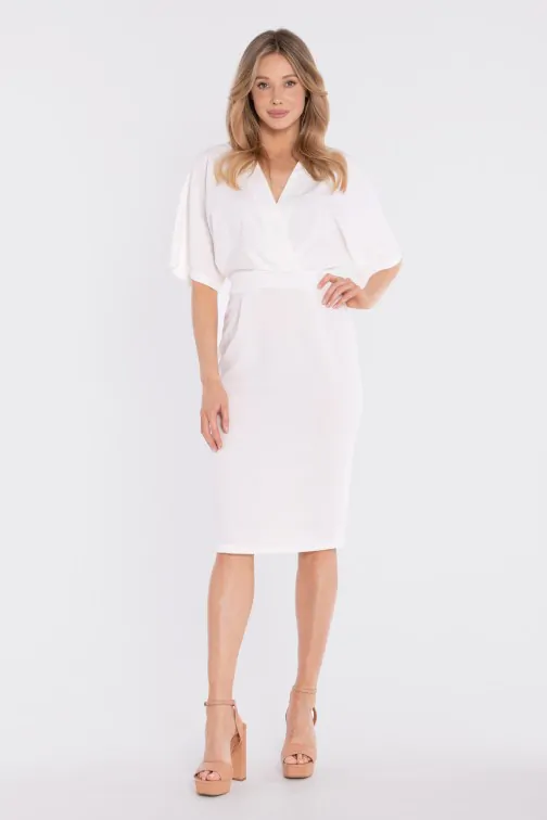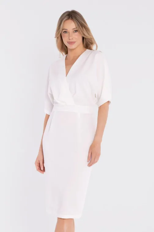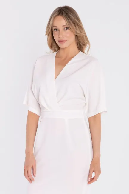 DM1681 Sukienka kopertowa midi z krótkimi rękawami - ecru