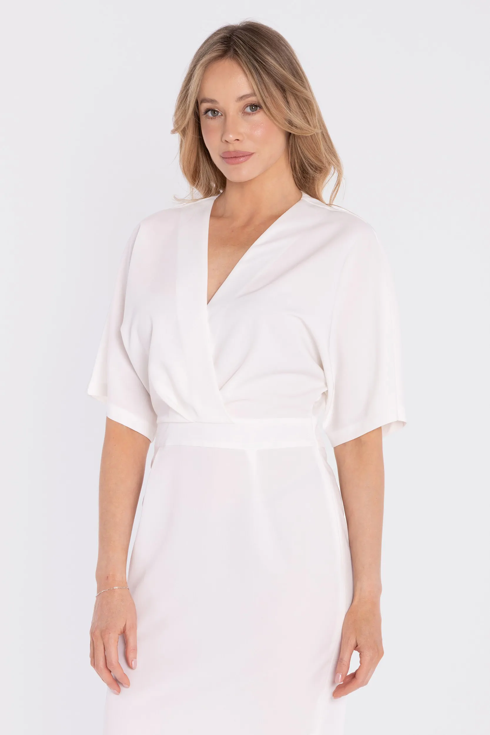 Sukienka kopertowa midi z krótkimi rękawami - ecru