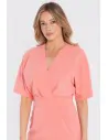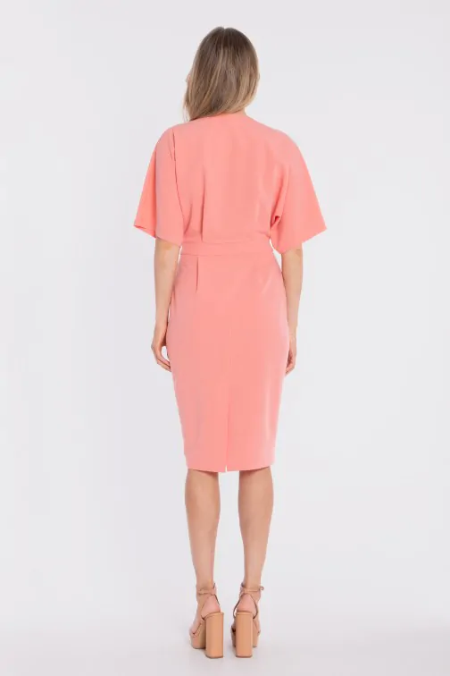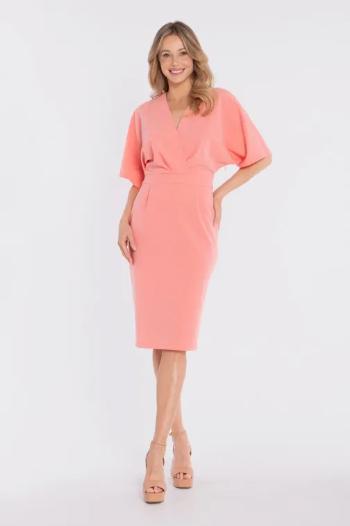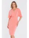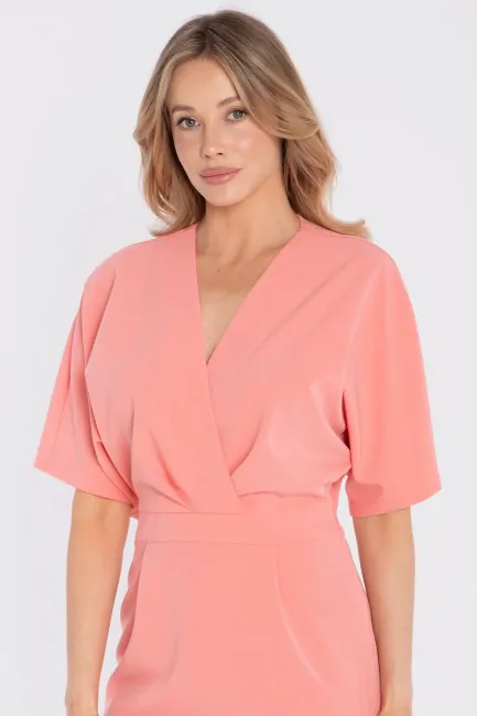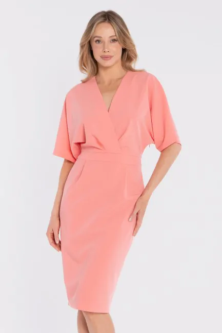 DM1681 Sukienka kopertowa midi z krótkimi rękawami - łososiowa