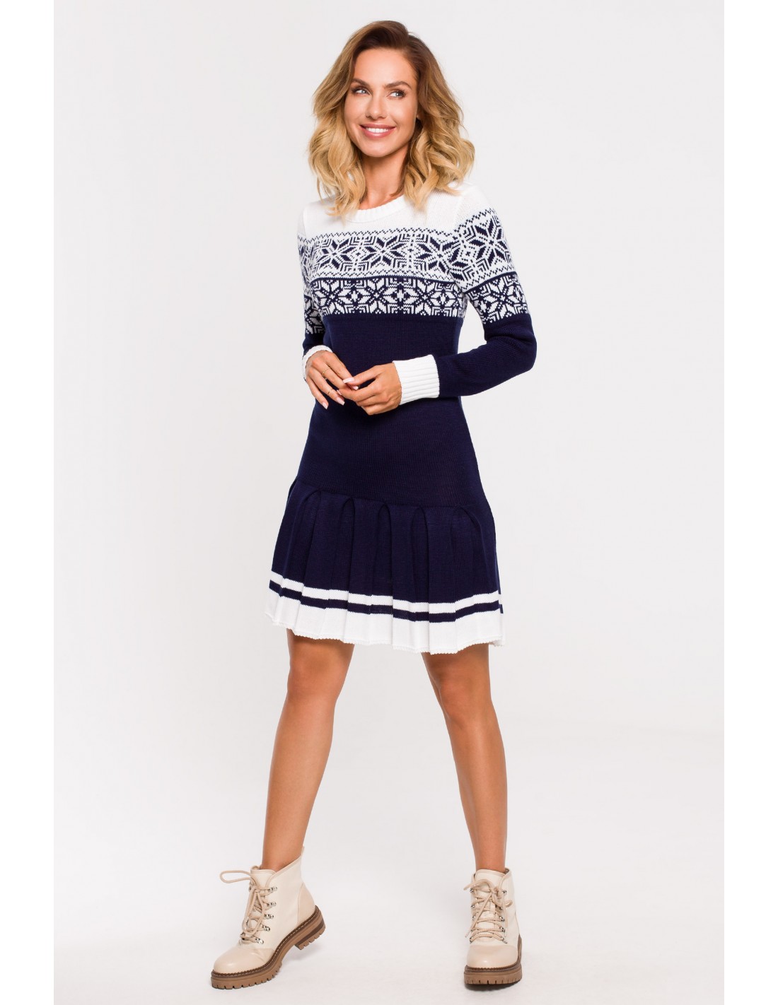 EM0001 Świąteczna sukienka swetrowa - granatowa