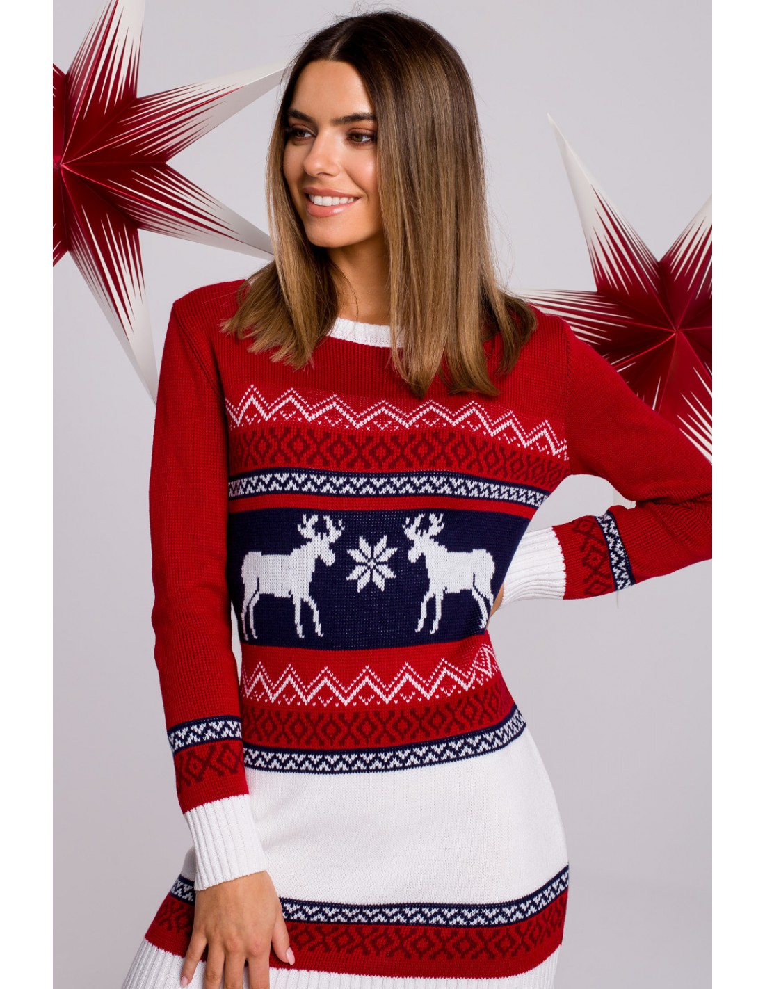 Świąteczna sukienka swetrowa o długości mini z dwoma reniferami z przodu oraz z tyłu. Model trzykolorowy idealnie dopełni świąteczny czas i sprawi, że poczujesz prawdziwą magię. Możesz potraktować ją również jako tunikę. Wyprodukowano w Polsce.
