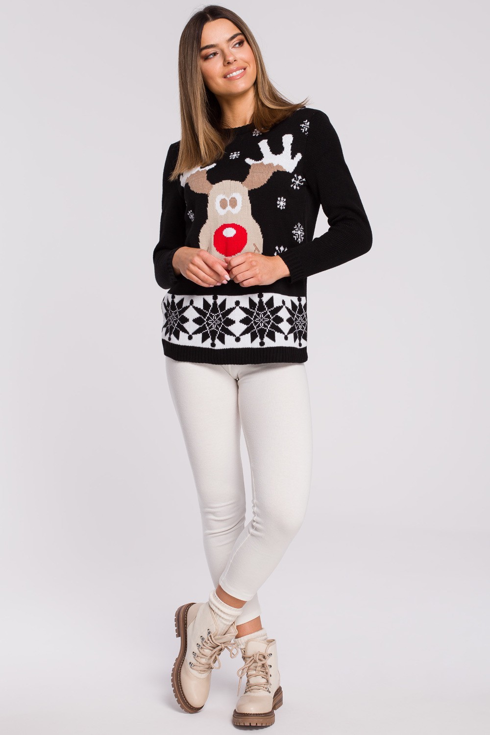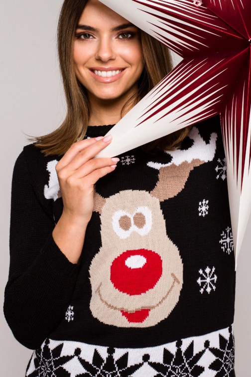 Zimowy sweter z reniferem na przodzie oraz elementami śnieżynek. Niesamowicie wygodny i ciepły - sprawi, że zimowe wieczory nabiorą nowego znaczenia. Doskonale uzupełni również Twoją świąteczną stylizację. Wyprodukowano w Polsce.
