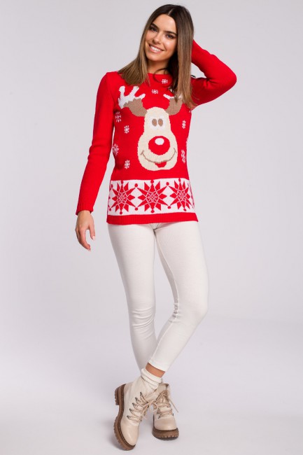 Zimowy sweter z reniferem na przodzie oraz elementami śnieżynek. Niesamowicie wygodny i ciepły - sprawi, że zimowe wieczory nabiorą nowego znaczenia. Doskonale uzupełni również Twoją świąteczną stylizację. Wyprodukowano w Polsce.