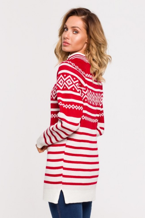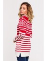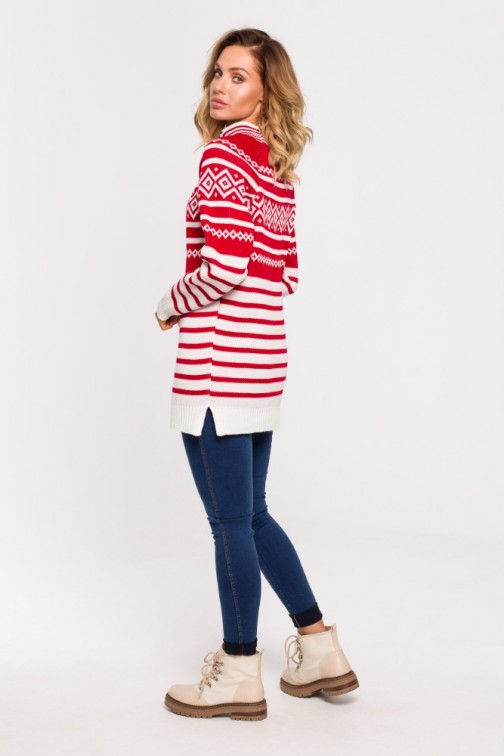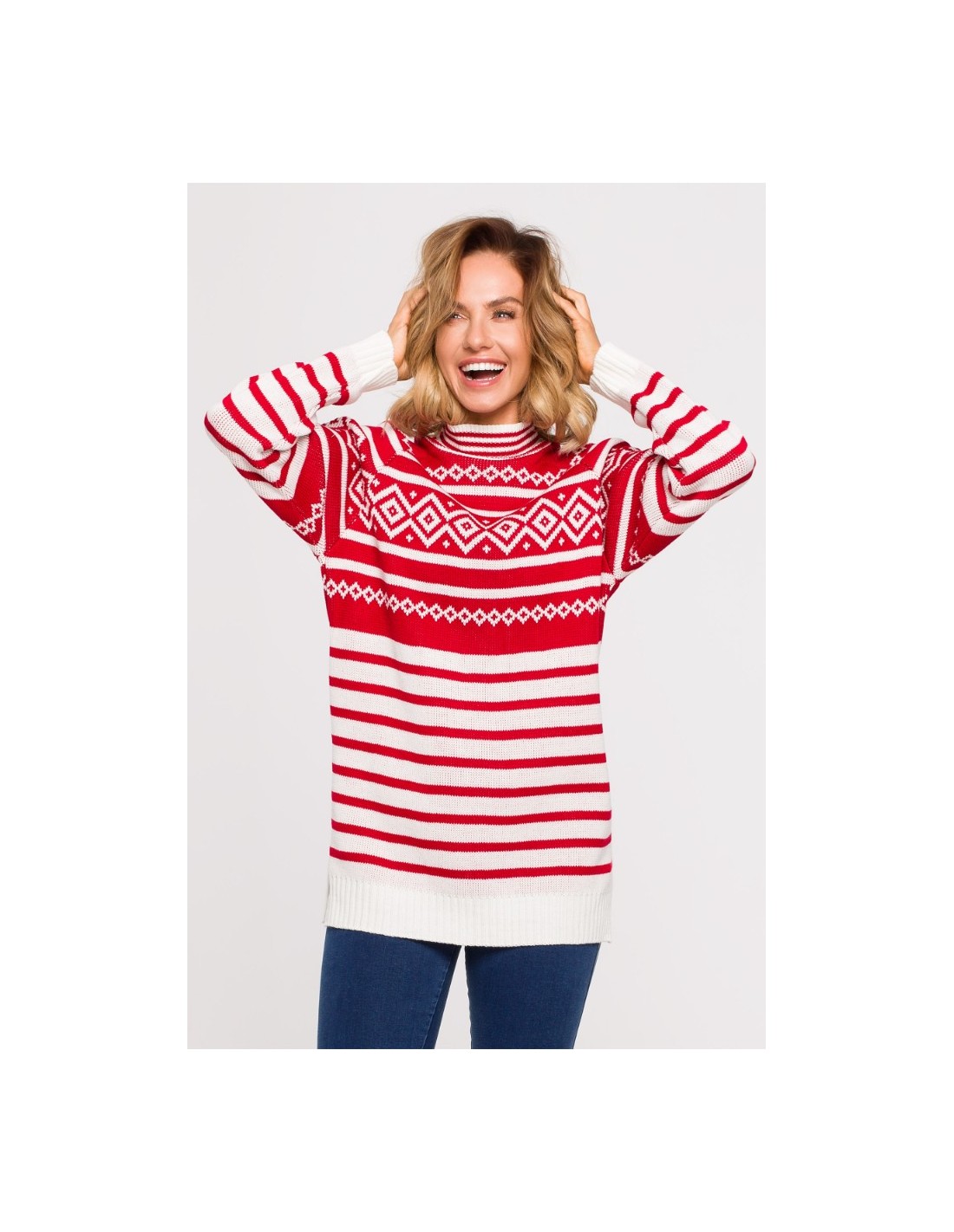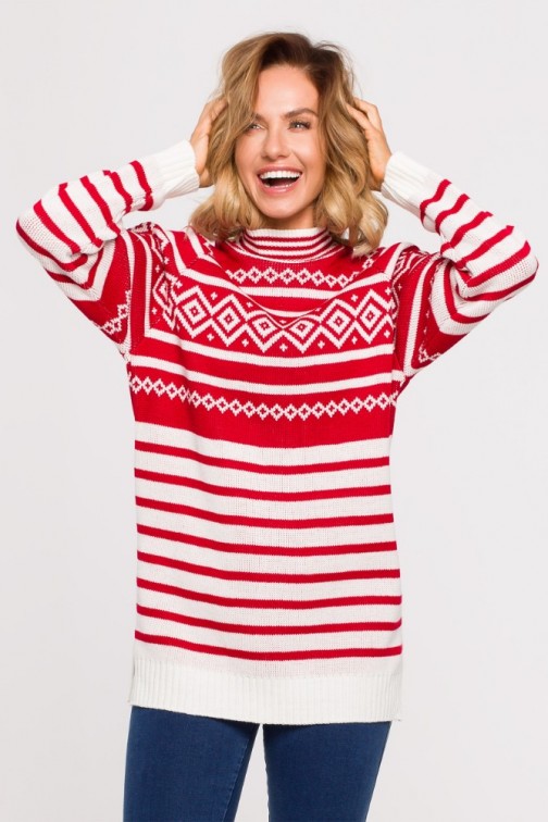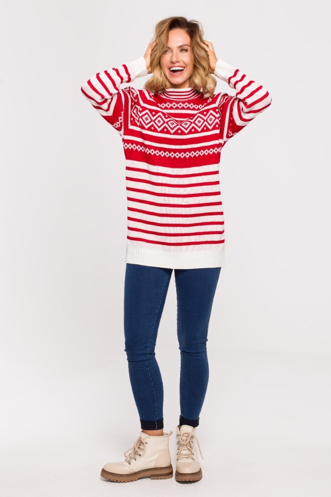 Hu hu ha, nasza zima zła, nie straszna kiedy masz ciepły sweter z półgolfem w delikatne prążki z zimowym motywem pod szyją. Przedłużony krój z rozcięciami na bokach zapewni komfort nawet w najchłodniejsze dni. Wyprodukowano w Polsce.