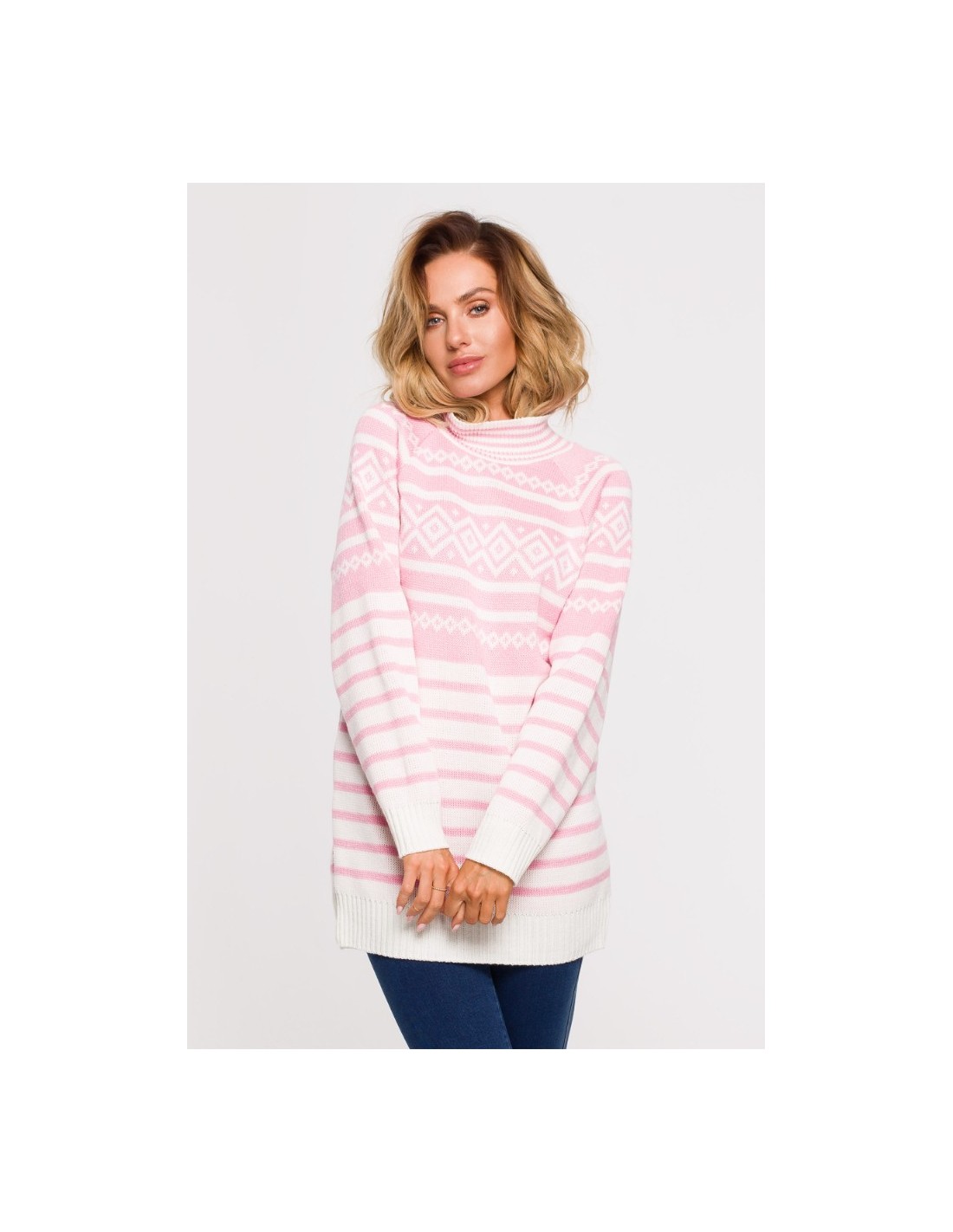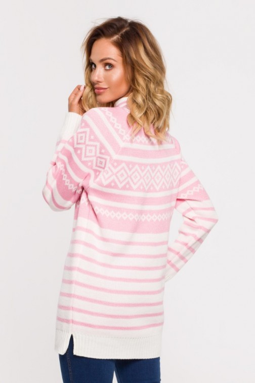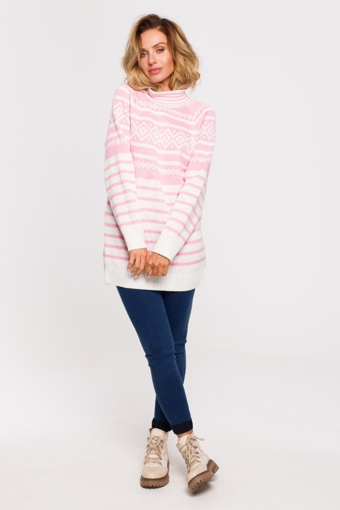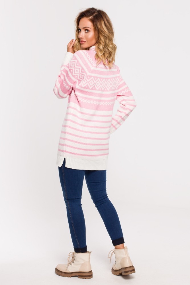 EM0008 Długi sweter z golfem - różowy