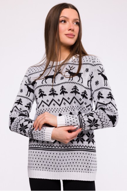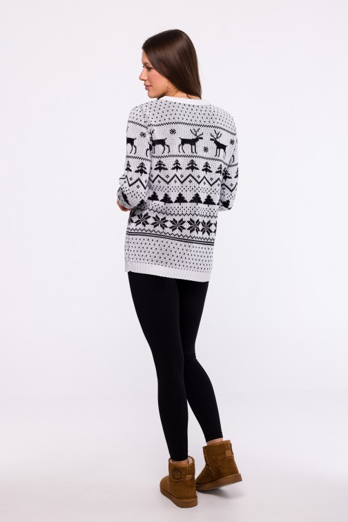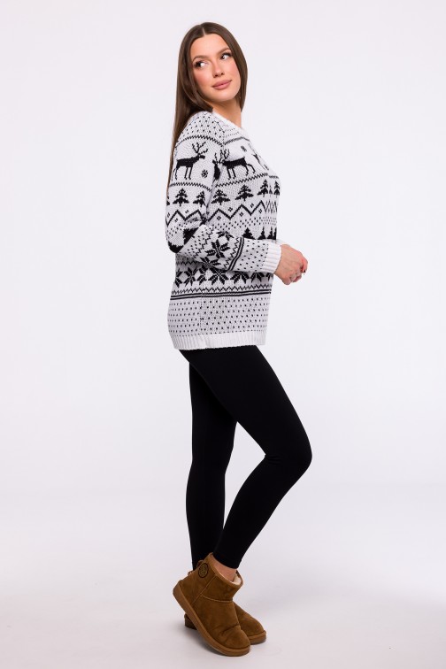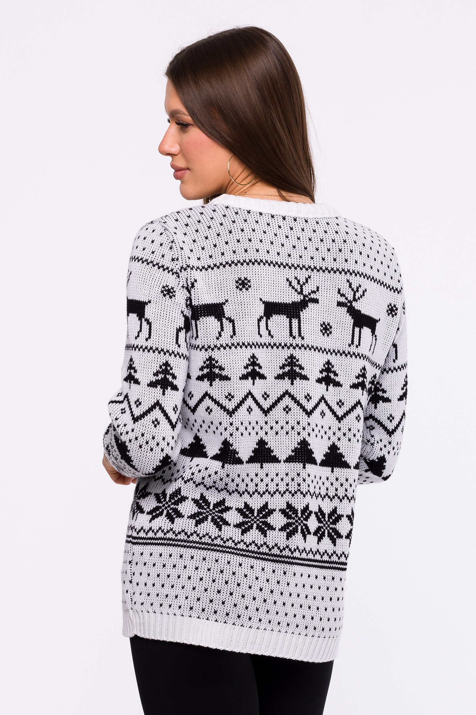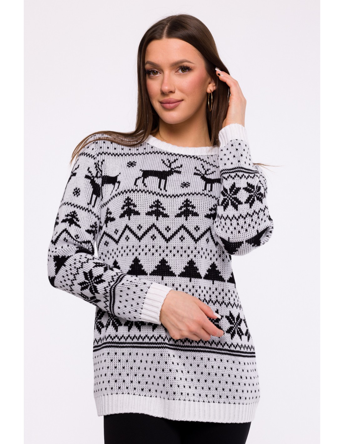 EM0009 Sweter świąteczny o prostym fasonie - biały