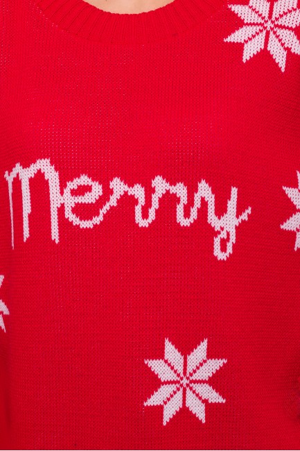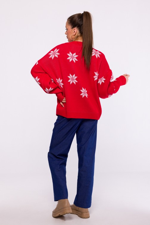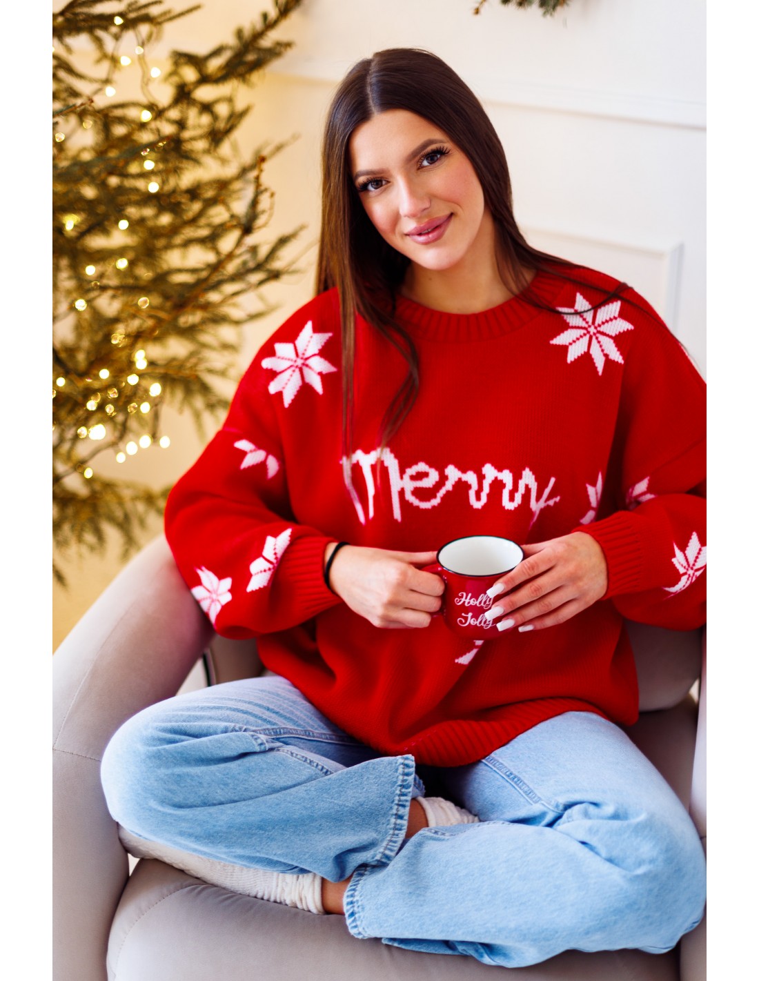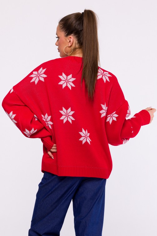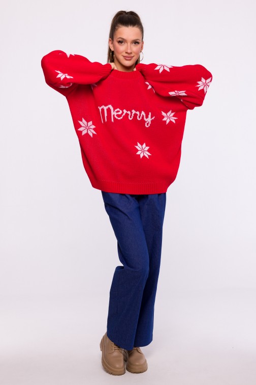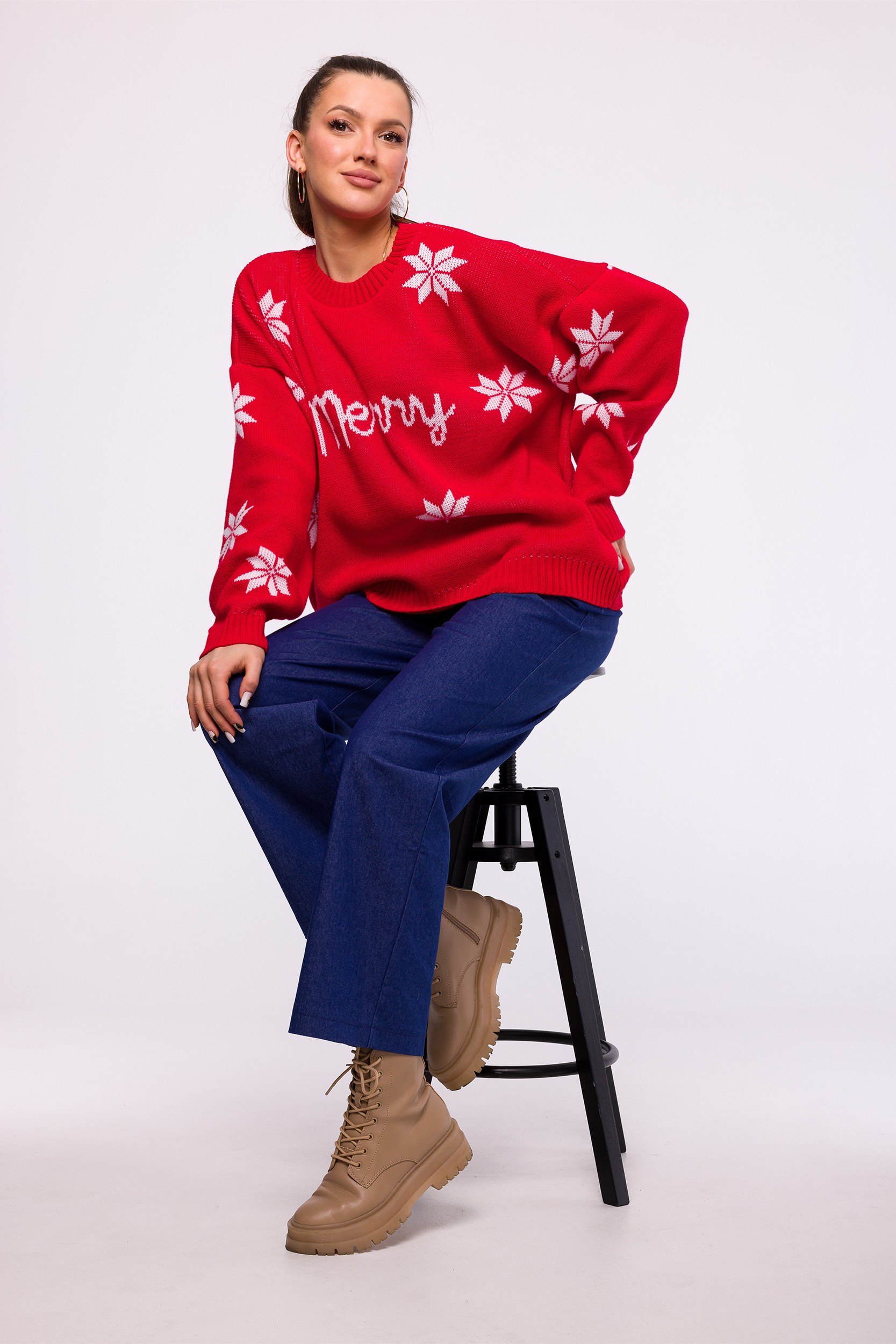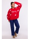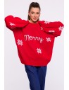 EM0010 Świąteczny sweter damski oversize - czerwony