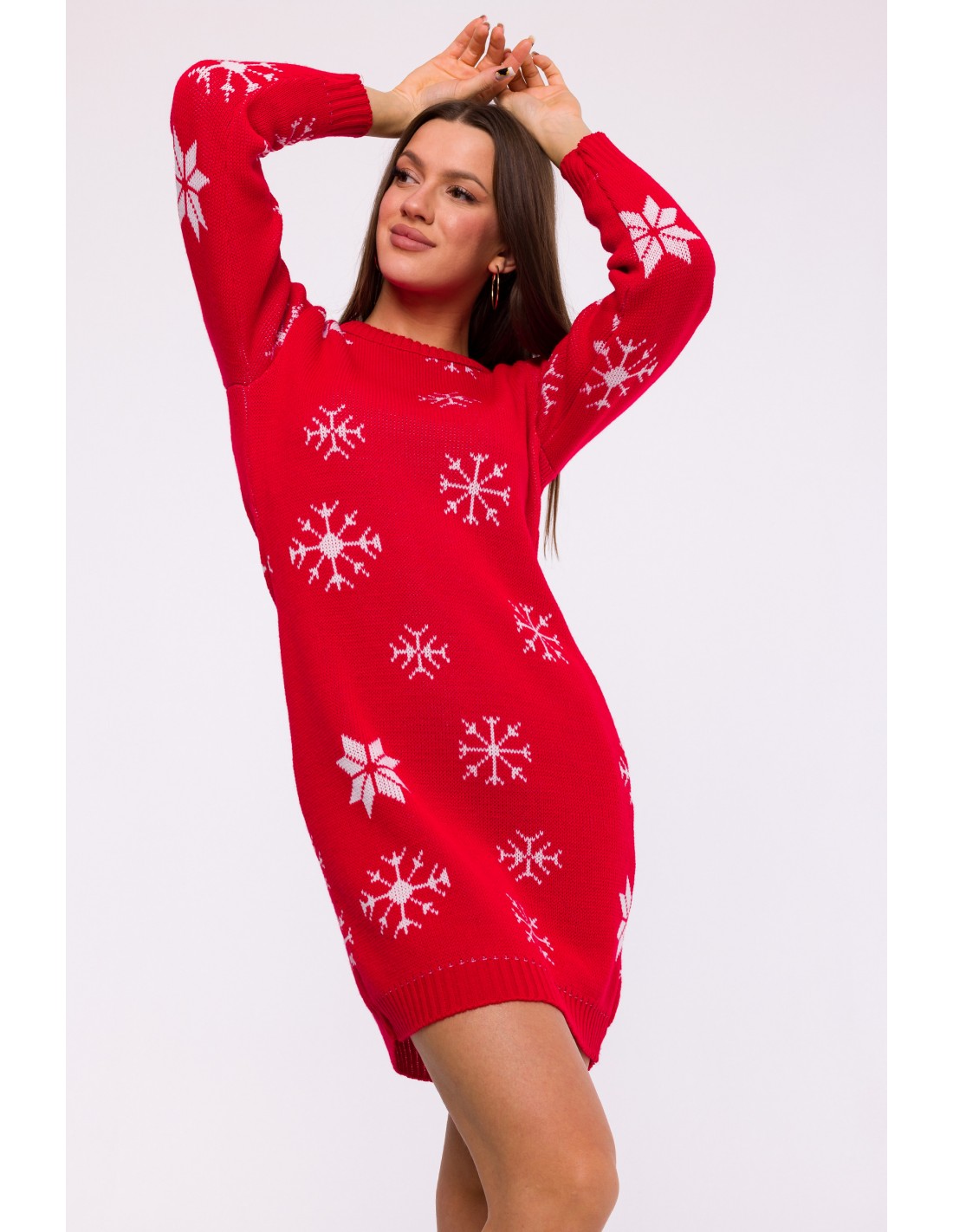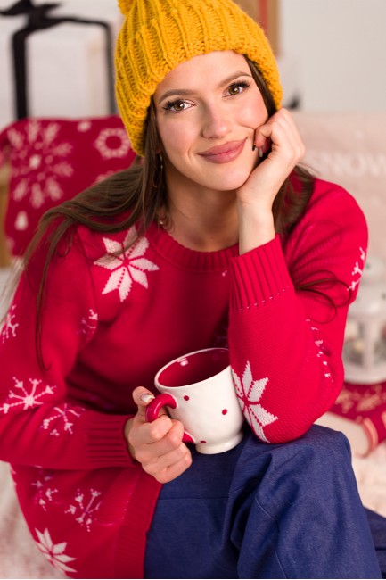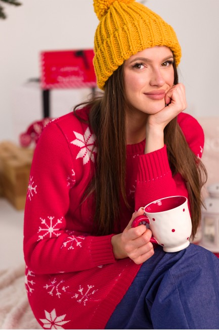 EM0011 Świąteczna sukienka swetrowa - czerwona