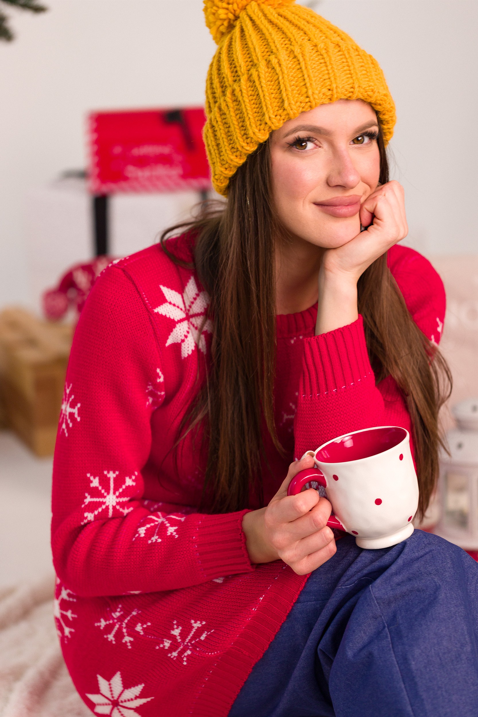Świąteczna sukienka swetrowa - czerwona