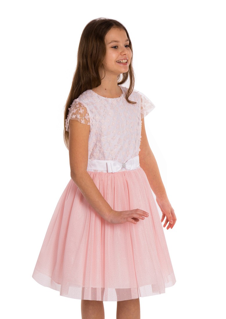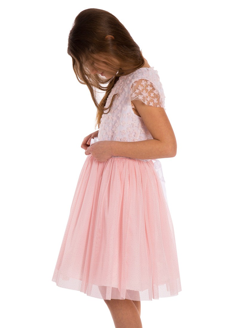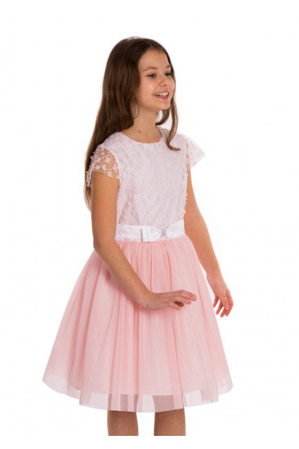 MA115 Dziewczęca sukienka tiulowa - pudrowy róż