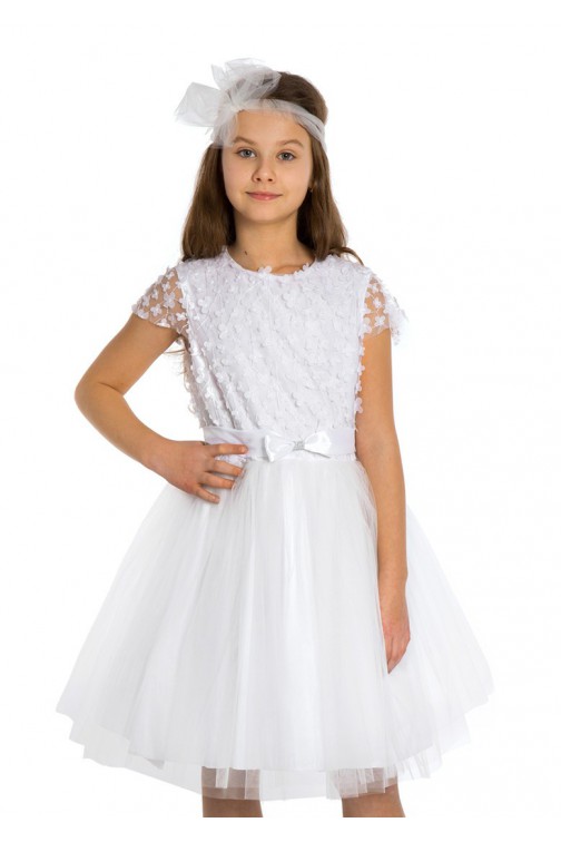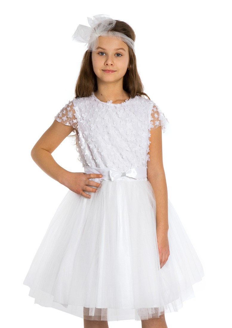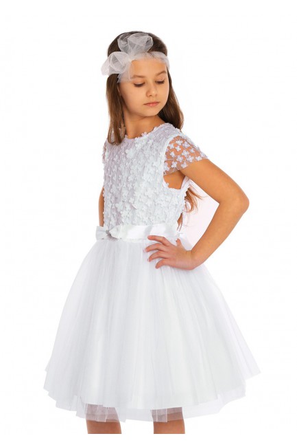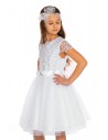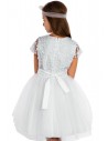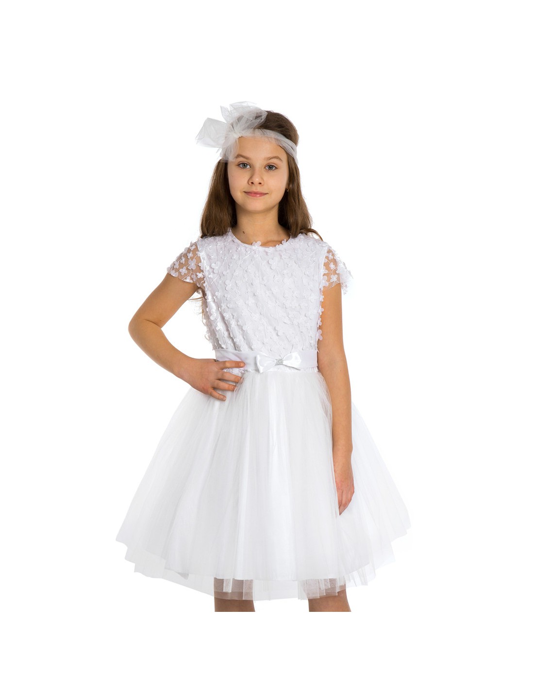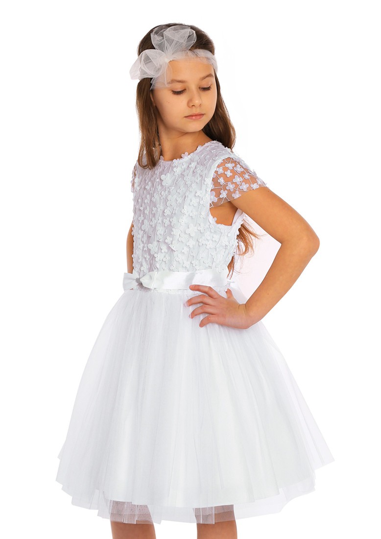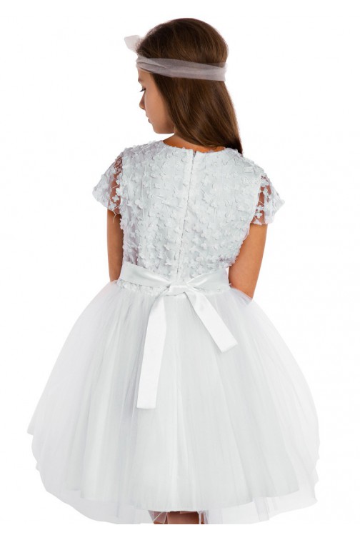Dziewczęca sukienka z falbanką u dołu. Od góry zdobiona kwiatuszkami. Wyprodukowana w Polsce dla Cudmoda.